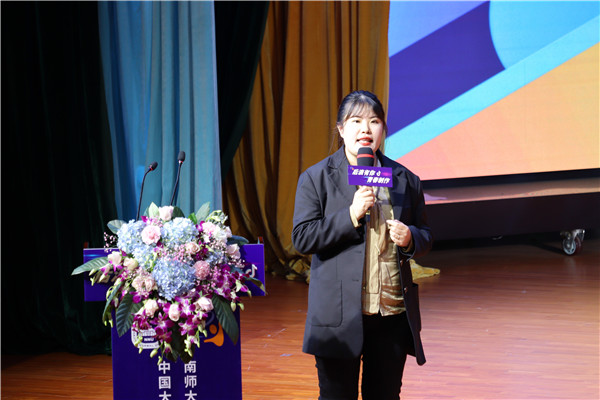 本次大赛一等奖获得者代表江晔丹上台分享,她们团队的抖音昵称为“有前途的320”表现着对光明未来的美好期待,本次获奖是宿舍四个人共同努力的结果,表示必定不忘初心,继续分享生活,分享快乐。而来自经管系的毕霜说,作为独立的自媒体人,接触自媒体初衷是为了记录自己的生活,同时学习各种能力;她强调做短视频时坚持的重要性,同时明确要作品风格与对应的视频受众,鼓励同学们参与自媒体创作,在实践中发掘自身的多样能力与无限潜能,传递新一代的朝气。人文系芮逸飞同学则另辟蹊径从“减肥”这个话题入手,获得了喜人的收获,既在拍短视频记录减肥生活时获得粉丝监督并成功减肥,同时发现了未来在自媒体就业的方向,决定参与到自媒体这个前景广阔的风口行业;并且激励同学们参与抖音短视频制作去积累经验,投身自媒体创业潮流。