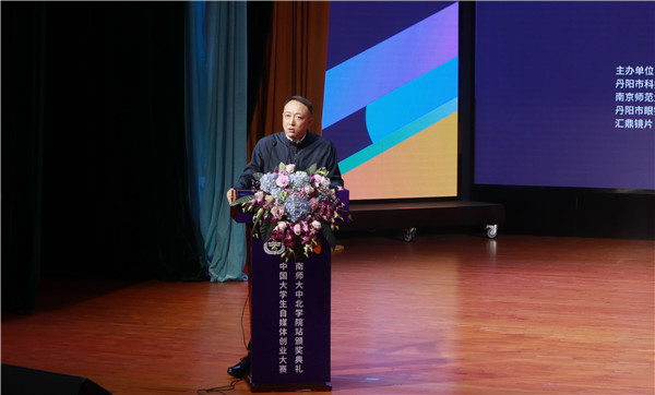 中北学院党委书记岳嵩致辞。他带来了对同学们的祝福与对参与大赛的老师和企业的感谢并强调青年大学生要保持创新的冲劲和闯劲,顺应自媒体创新创业的潮流。他表示学院重视学生的创新、创业情况,学院与丹阳市人民政府及多个企业开展合作,为同学们提供多样的创新机会,激发学生创新、创业意识,增强学生创新、创业能力。创新并不是遥不可及的,从国家层面诠释了创新的必要性,希望同学们一定要敢于去创新,把握机会,积极投身创新创业潮流。