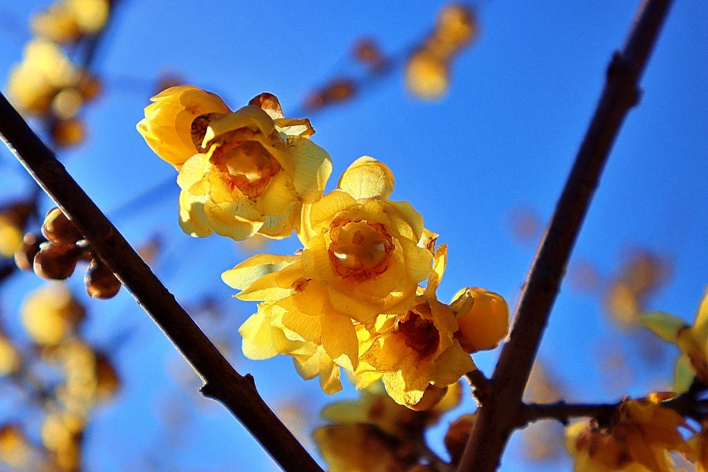 腊梅还挂黄金甲,一树一树春梅俏。