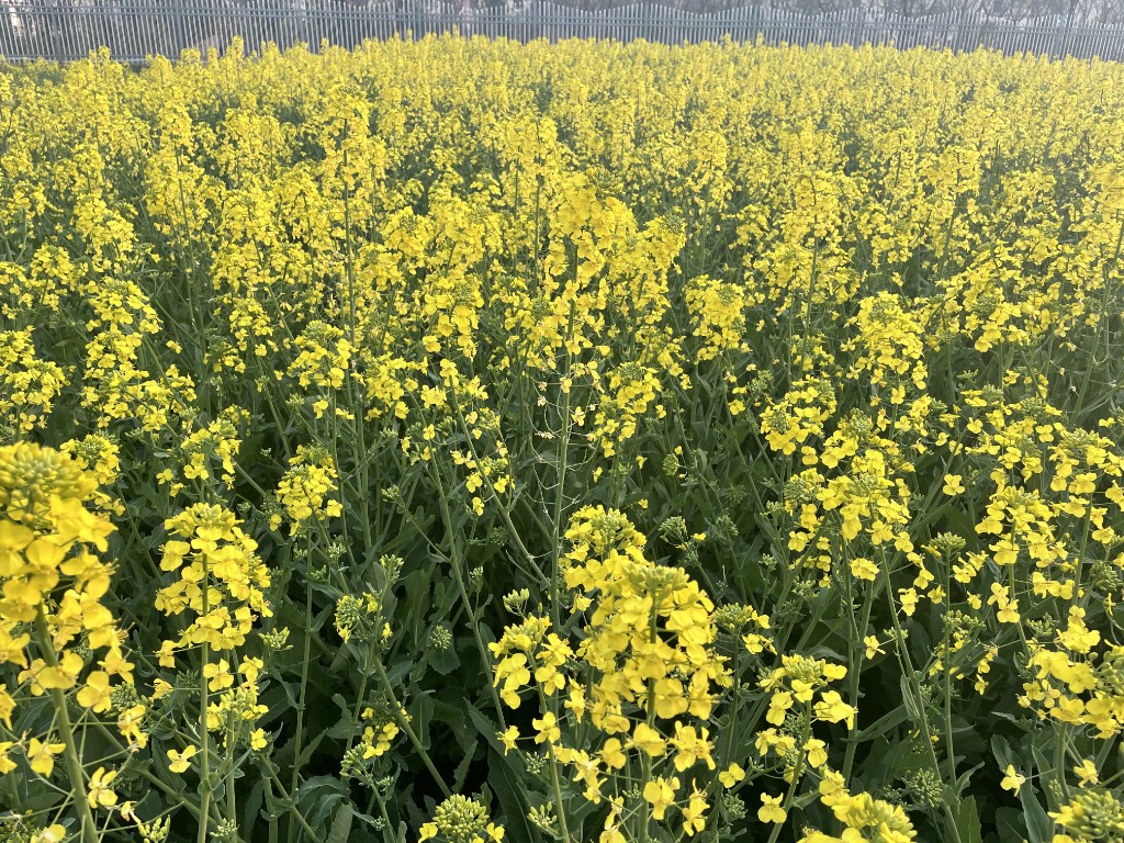 透视围墙外,油菜花开一地金。