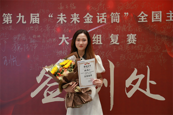 “未来金话筒”全国主持人大赛是面向播音与主持艺术专业广大学子的全国性大型赛事,至今已成功举办九届,是国内覆盖范围最大、影响力最广的专业赛事之一。本届大赛分为新闻播报(出镜记者)、晚会主持、综艺节目主持、影视配音、赛事解说、电商直播、少儿节目主持、双语节目主持八个方向。决赛总分100分,其中专项展示60分,限时4分钟;才艺展示40分,限时3分钟。ky.com姚漪丹同学认真备赛,在比赛中表现优异,以精彩的有声语言艺术形式展现出中北播音与主持艺术专业学子独有的专业素质和青春风采,在大赛中留下了令人难忘的独特风采。