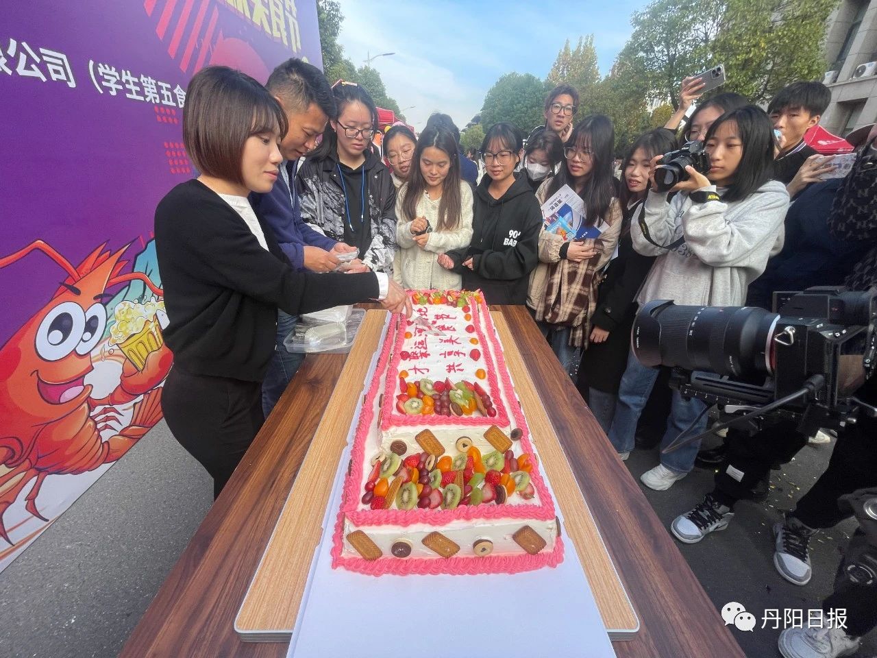 丹阳大蛋糕的吉尼斯纪录在中北。百人分享大蛋糕是中北美食节的传统项目,案几一样大小的三层大蛋糕需要几个年轻人才能抬起。这里排队的人最多,队伍最长,持续的时间最久,几百个人吃蛋糕,从美食节开幕可以分食到美食节谢幕。