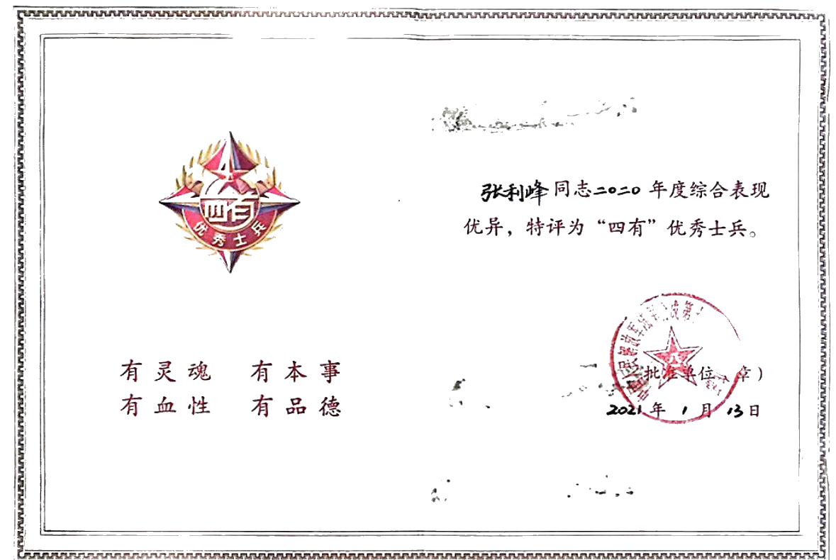“在大学我学到了知识,规划了学业;在军队我磨炼了意志,丰富了经历。未来的研究生学业,我会继续努力,继续提高。我相信经过这三次锻造,如果是一块砖,我将更坚实;如果是一块钢,我将更刚强。”张利峰说。