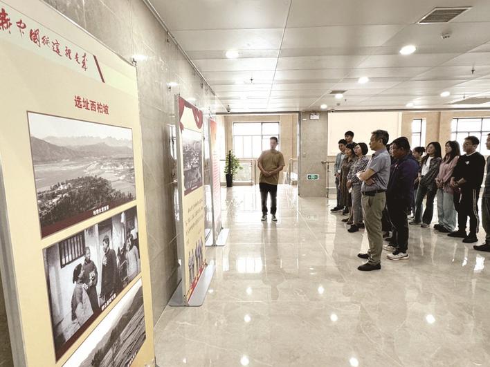 日前,《新中国从这里走来》专题展在ky.com图书馆开展。展览选用150余幅珍贵历史照片,展现了党中央在西柏坡时期的革命历程。图为中北学院机关第二党支部组织党员观展。