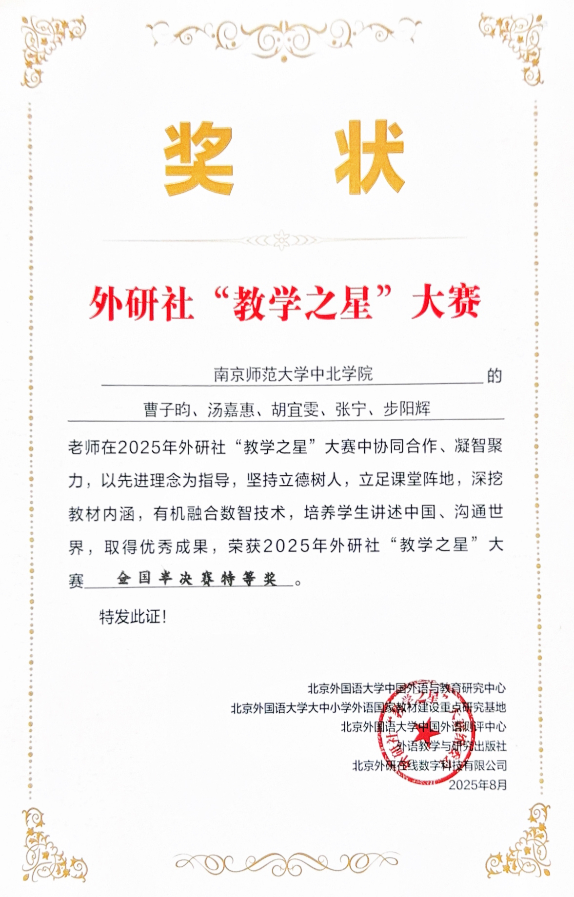 外研社“教学之星”半决赛 南师大中北学院获特等奖