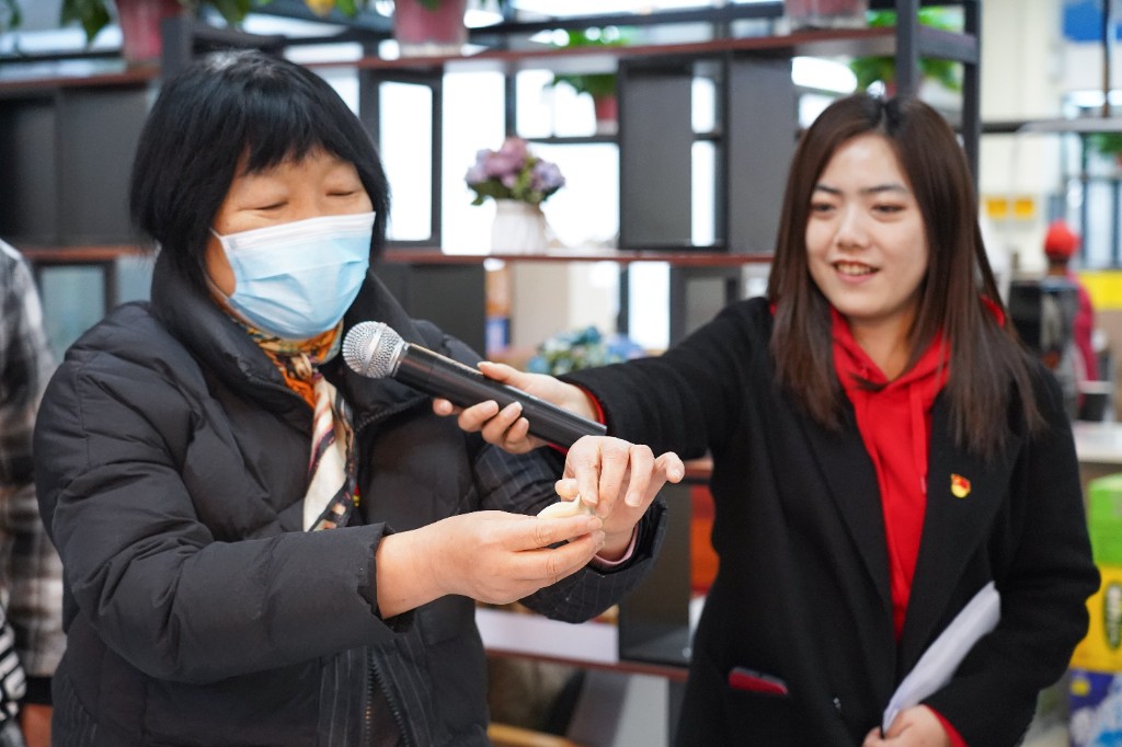 上午十点三十分,包饺子活动正式开始。首先由机关第二党支部石中花老师向师生们演示包饺子技巧。随后,老师和同学们齐聚一堂,在愉快的氛围中,老师们与同学们一边动手包饺子,一边轻松拉家常,场面热闹温馨。活动中,还进行了5分钟包饺子比赛,看哪一组包的又快又美观,通过评选,刘媛媛老师组和刘旋老师组获胜。大家包的饺子形态各异,体现了各地方不同的风俗习惯。