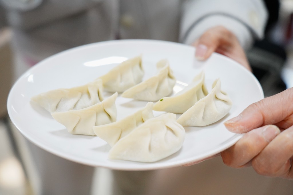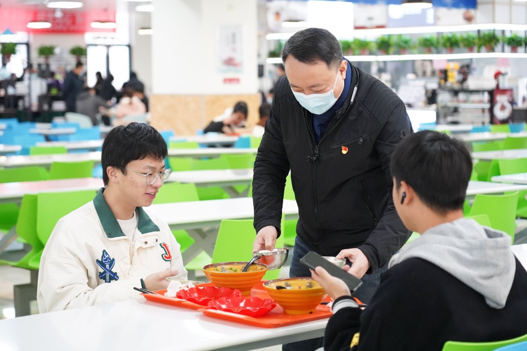 饺子煮熟后,学院领导为协助疫情防控的志愿者和在食堂就餐的同学们送上饺子,为同学们带来了温暖。参加活动的师生们也共同品尝热腾腾的饺子,每个人脸上都洋溢着幸福的笑容。