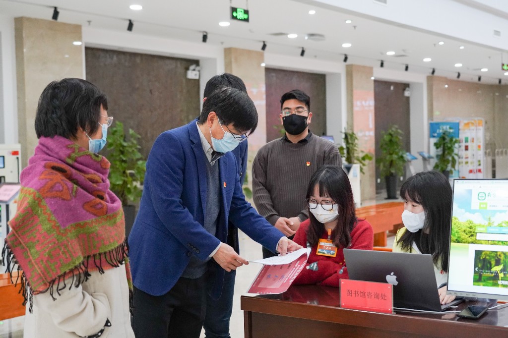 3月31日下午,“我为师生办实事”图书馆数字资源服务暨机关第一党支部校园服务宣传周在图书馆二楼大厅拉开序幕。
