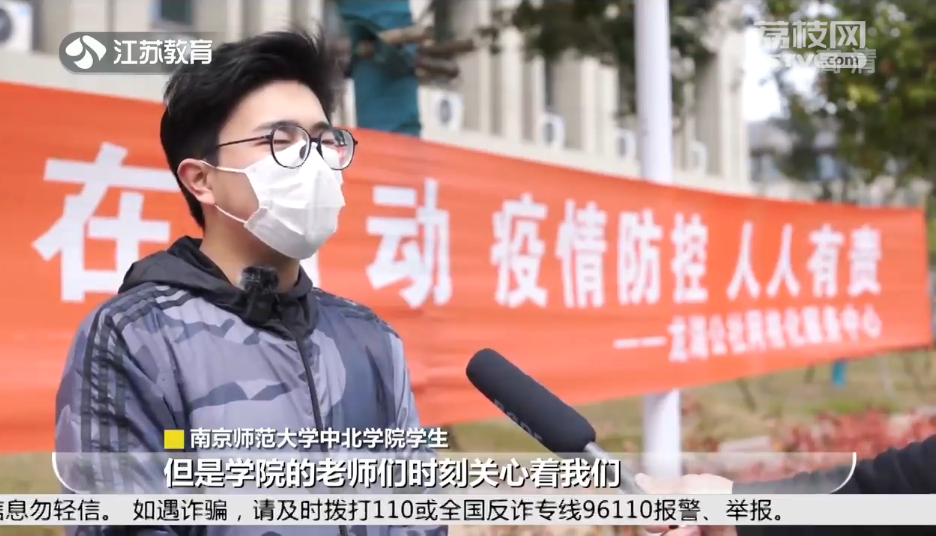 人文系学生张致远:虽然现在校园封闭了,给我们的生活带来了很多困扰,但是学院的老师们时刻关心着我们,特别是南京的老师,离家坚守在学校,和我们在一起,为我们服务,我非常地感动。我们现在能安全地学习和生活,多亏了他们的辛勤付出,谢谢他们!