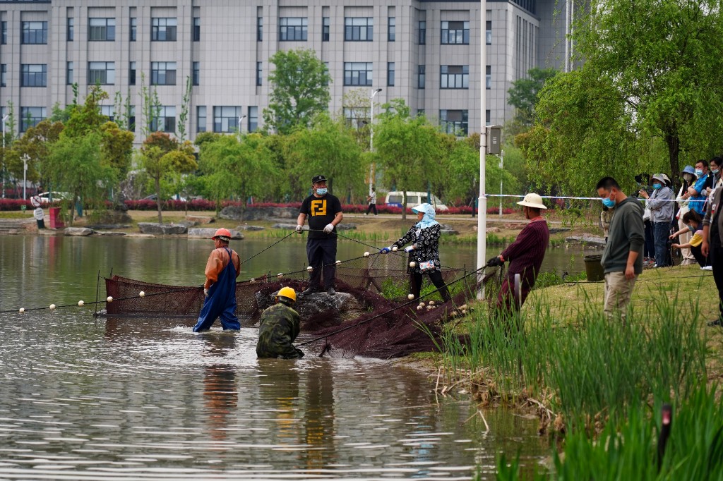 龙湖首次捕鱼,中北师生“捕捉”乐趣多