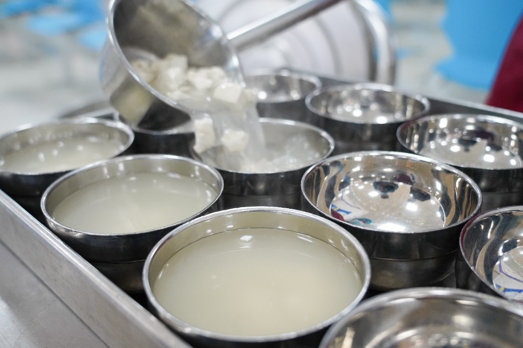 鱼不够,汤来凑。本来计划吃鱼宴,因为鱼不够,食堂只能熬制鲜美的鱼汤给师生品尝,师生们喝着鱼汤,回想观看捕鱼时的趣事,回看捕鱼的照片,别有一番滋味。