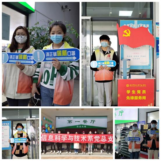 协助学院督促广大同学养成食堂、核酸检测区等公共区域佩戴口罩和保持1米安全距离的习惯,信息系学生党员和入党积极分子,积极组建疫情防控学生党员先锋队,在南北苑食堂出入口,进行就餐引导,志愿服务。每一名同学都是一面旗帜,学生党员和入党积极分子在志愿服务的过程中,既强化了“为人民服务”的责任意识,同时也让群众看到了青年学生党员的责任与担当。