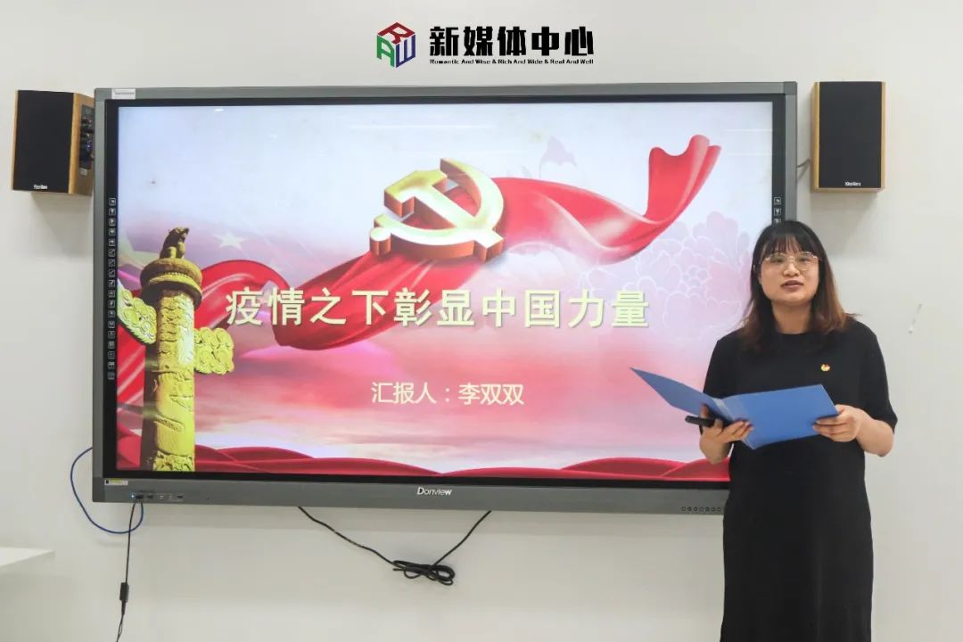 公管系李双双老师的课程主题是疫情之下彰显中国力量。她讲到:90后甚至是00后,疫情当前,奋不顾身冲往前线,“哪有什么白衣天使,不过是一群孩子换了一身衣服,学着前辈的样子,治病救人、和死神抢人罢了……”疫情之下的中国力量,不仅体现在政府的动员能力,更体现在青年的新生力量。