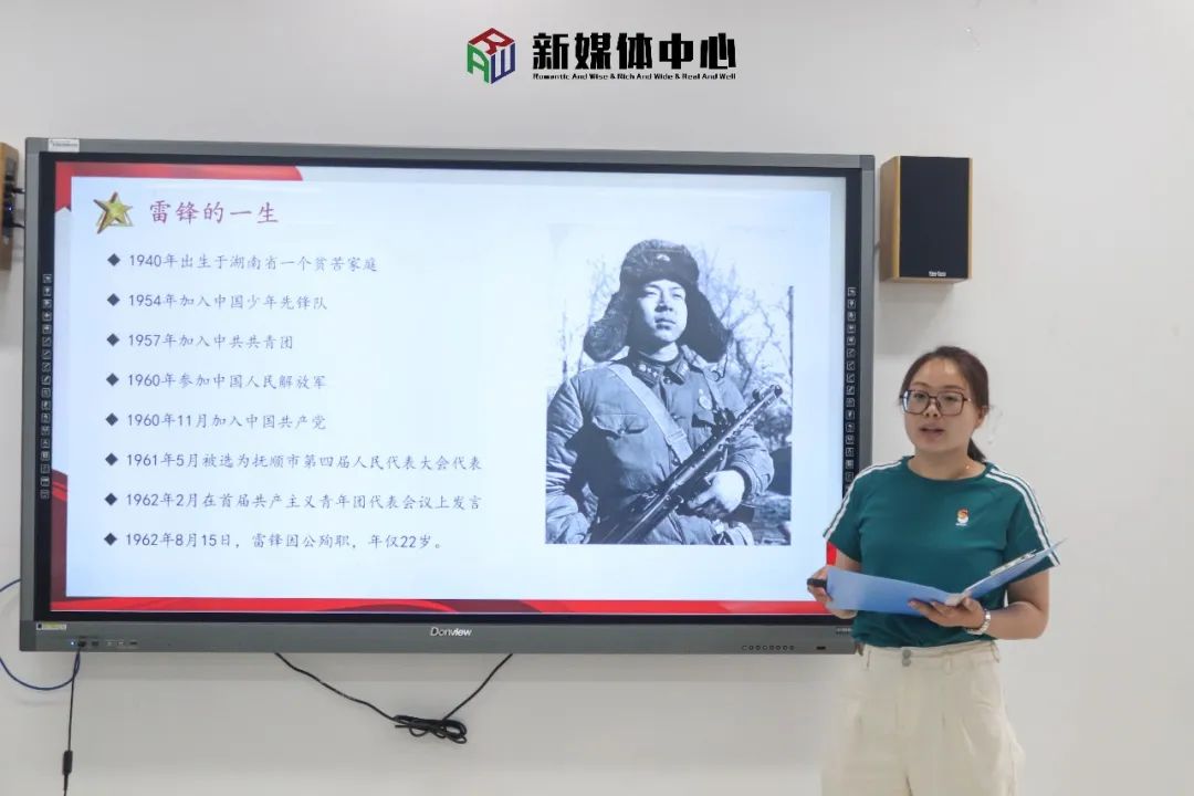 外语系赵峥嵘老师的课程主题是学习雷锋精神。她用雷锋大到抗洪抢险,小到为战友缝被的奉献事迹,全心全意为人民服务的信念,结合了当今社会平凡而伟大的人们,在洪水、疫情等的患难之中,所展现出的献身精神,阐释了雷锋是一个时代的楷模,雷锋精神是永恒的。