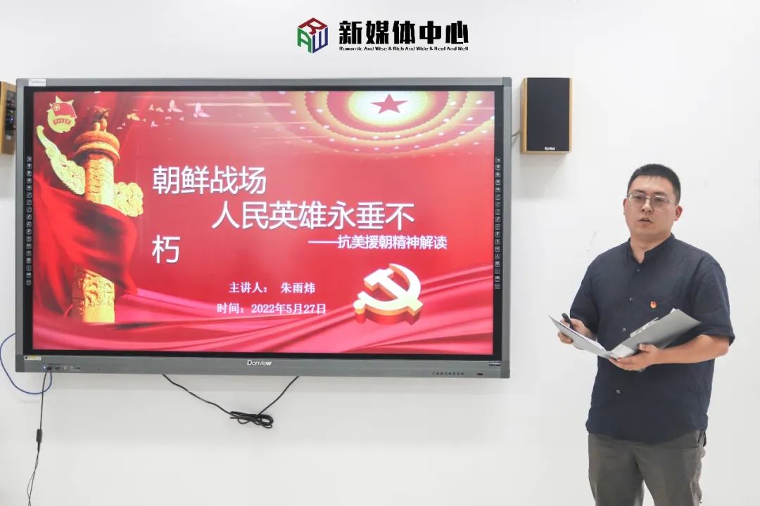 外语系朱雨炜老师的课程主题是朝鲜战场,人民英雄永垂不朽。他围绕朝鲜战争中体现的抗美援朝精神展开。广大志愿军为了祖国和民族尊严而奋不顾身的爱国精神,为了完成祖国和人民赋予的使命、为了人类和平的正义事业奉献一切的忠诚和国际主义精神,是中华民族极其宝贵的精神财富。