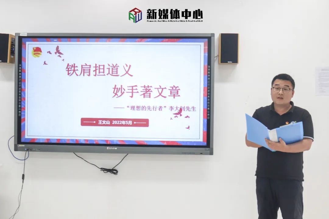 外语系王文山老师的课程主题是“铁肩担道义,妙手著文章”。他通过李大钊先生的狱中绝笔,引申了青春之中华、青春之进步、青春之理想和青春之使命四个部分,李大钊和更多牺牲的烈士们的遗愿,我们将永志不忘。