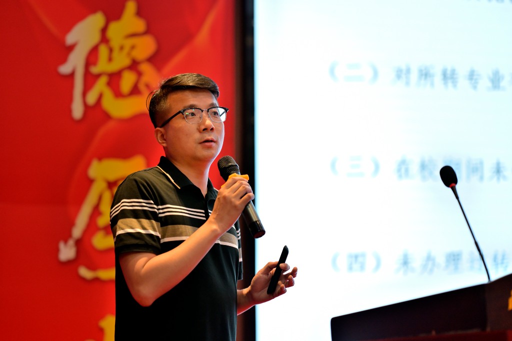 在培训会上,学工处副处长周瑾对江苏新高考改革方案以及我院2022年招生计划以及在苏招生专业组的设置做了系统的解读。教务处副处长郝臻威对我院转专业政策、嵌入式人才培养方案、厚生访学计划、海外学习计划等特色进行了详细的介绍。学工处处长陈伟对2022年招生宣传工作方案,包括招生工作和片区组安排,招生宣传时间,招生工作安排,费用奖励和工作要求等做了详细的解读。