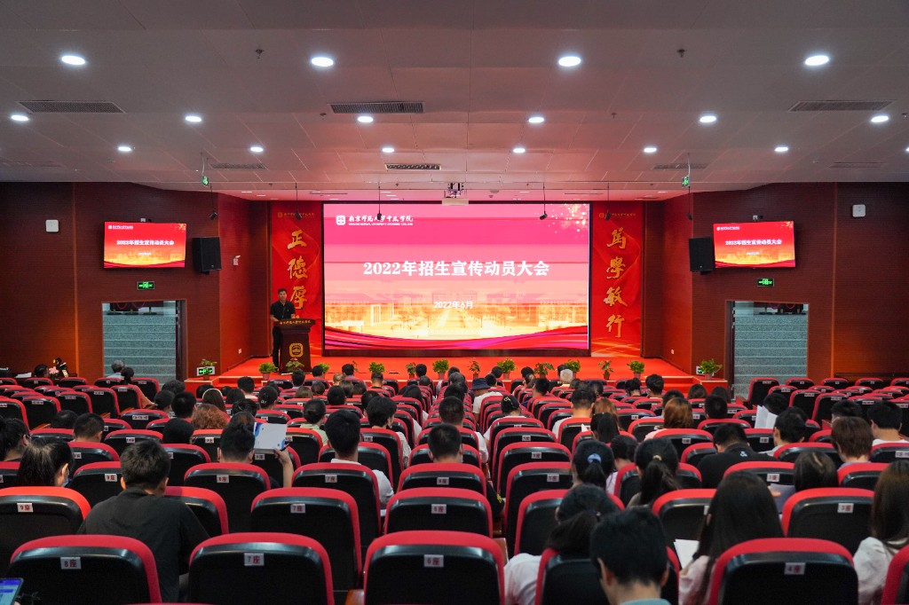 2022年6月14号下午3点30分,我院在图书馆报告厅召开2022年招生宣传动员大会,旨在对2022年普通高考招生宣传咨询工作开展动员、部署和培训。南京师范大学党委常委、副校长,中北学院党委书记、院长张连红出席会议。学院全体院领导、各职能部门负责人,各系科系主任、党总支副书记、教学副主任、教研室主任以及全体招生宣传老师参加会议,会议由党委副书记冷开振主持。
