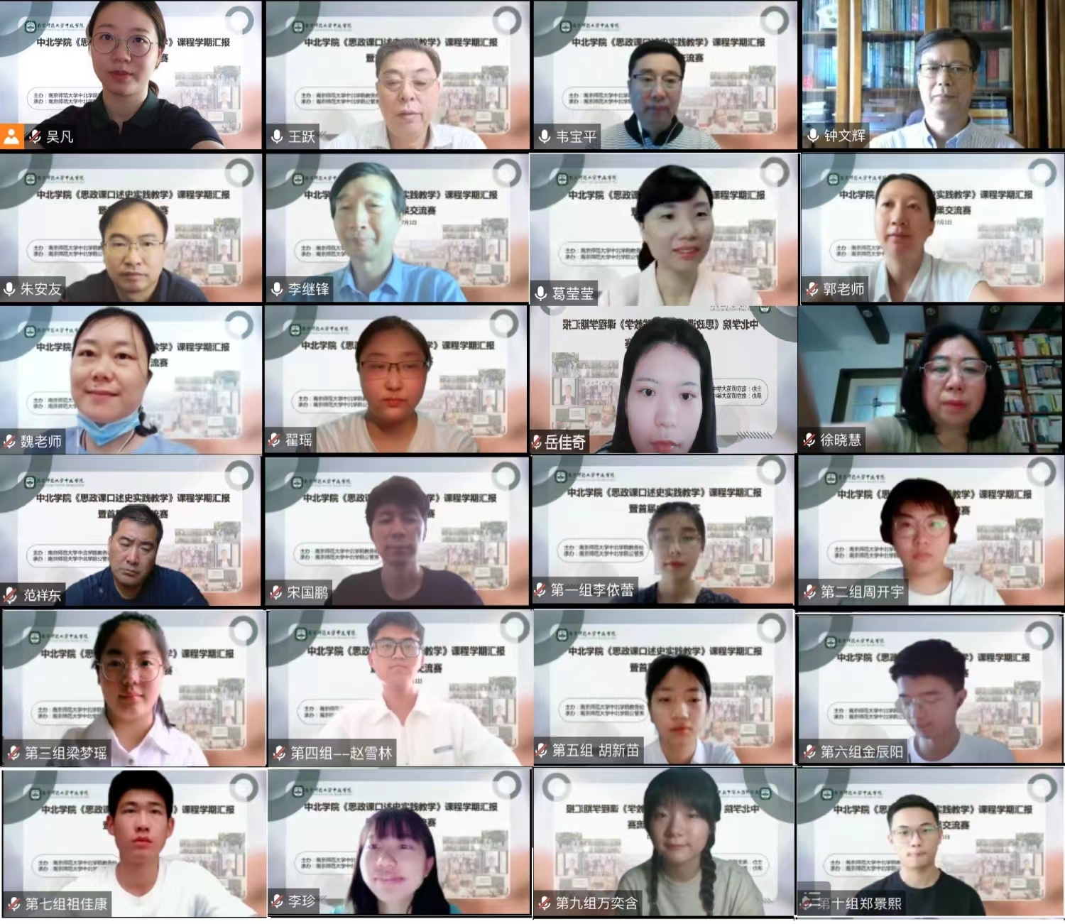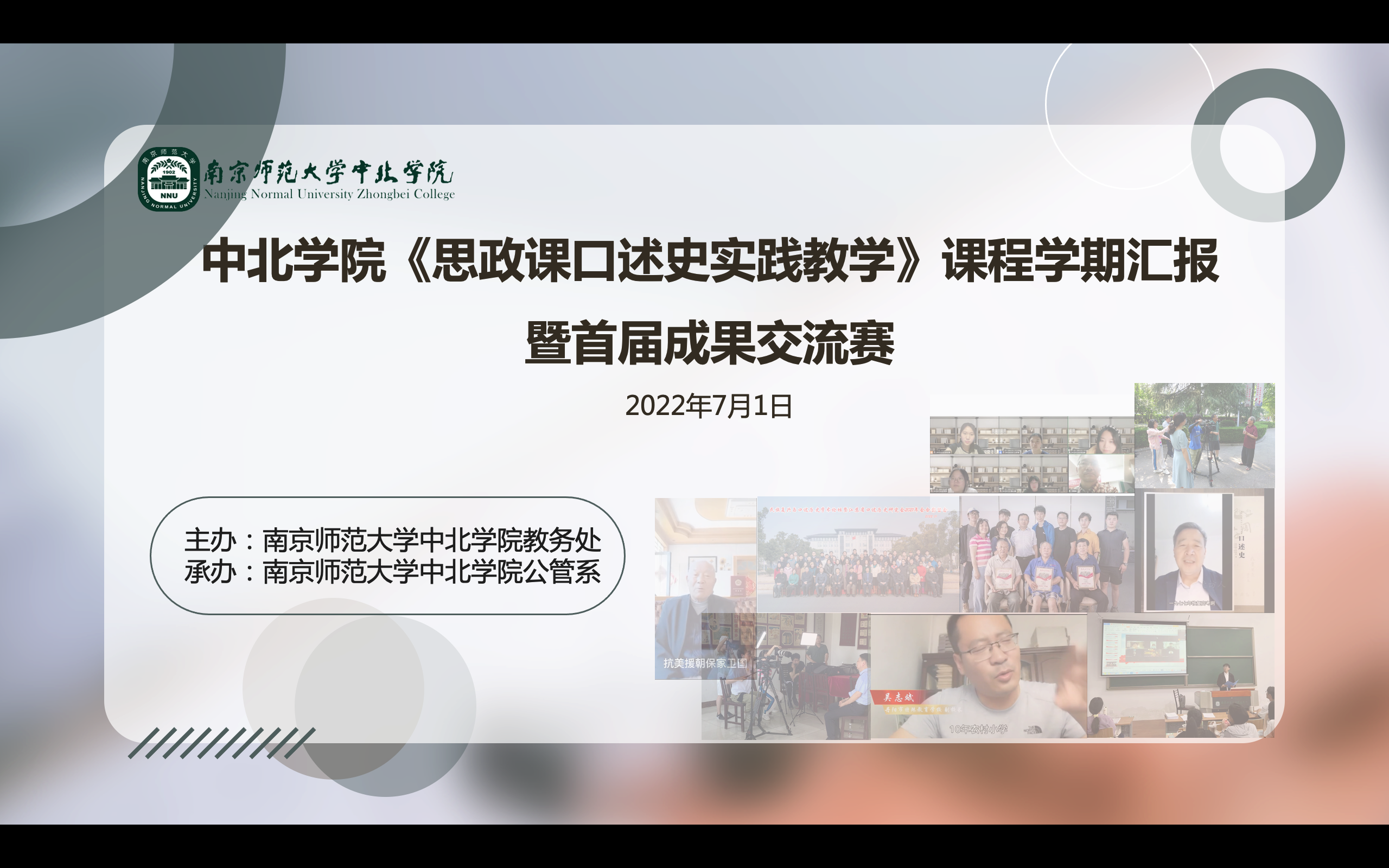 2022年7月1日上午,由ky.com教务处主办,公共管理系承办的中北学院《思政课口述史实践教学》课程学期汇报暨首届成果交流赛决赛在线上顺利举行。参加会议的专家评委有:南京师范大学马克思主义学院教授委员会主任、教育部高校思政课教指委委员王跃教授,江苏省口述历史研究会会长、省委党校党史党建教研部李继锋教授,中北学院副院长钟文辉教授、教务处处长朱安友和公共管理系主任韦宝平教授。会议由学院公共管理系副主任葛莹莹副教授主持。