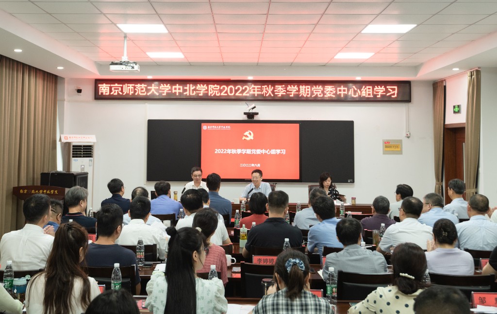 8月28日,我院举行2022年秋季学期党委中心组学习,通过学习、讨论、总结,加强内涵建设,推进融合发展,促进能力提升。南京师范大学党委常委、副校长,中北学院理事长、院长张连红,全体院领导,学院中层干部参加学习会议。