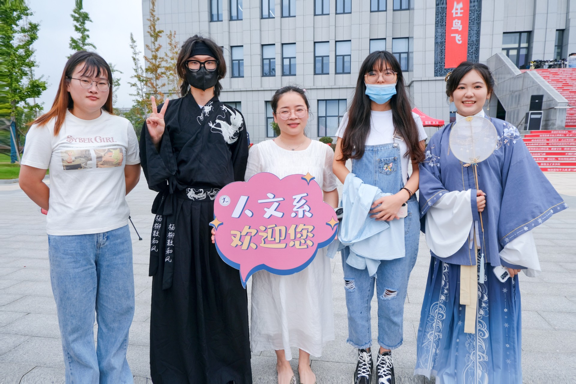人文系准备了微电影和盲盒礼品,让人文系新生感受到别样的惊喜。人文系学长学姐穿上了中国传统文化特色的汉服,手举标牌,迎接学弟学妹。