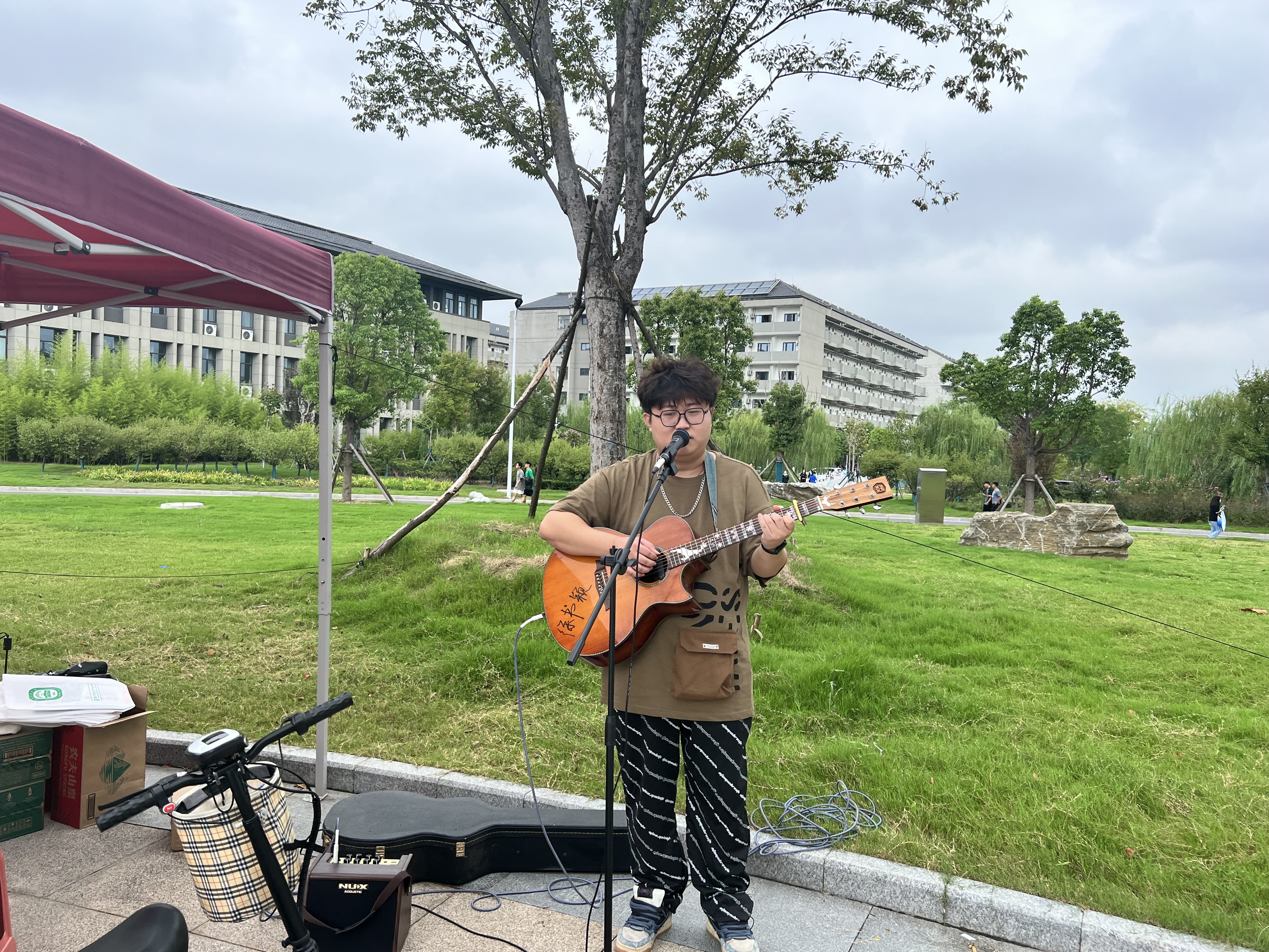 音乐系更是大展身手,由程铖等五人组成的天光大亮乐队在图书馆门口热情演奏,还有其他的音乐系学长学姐开口演唱,让新生感受到了我院学子的满满活力。