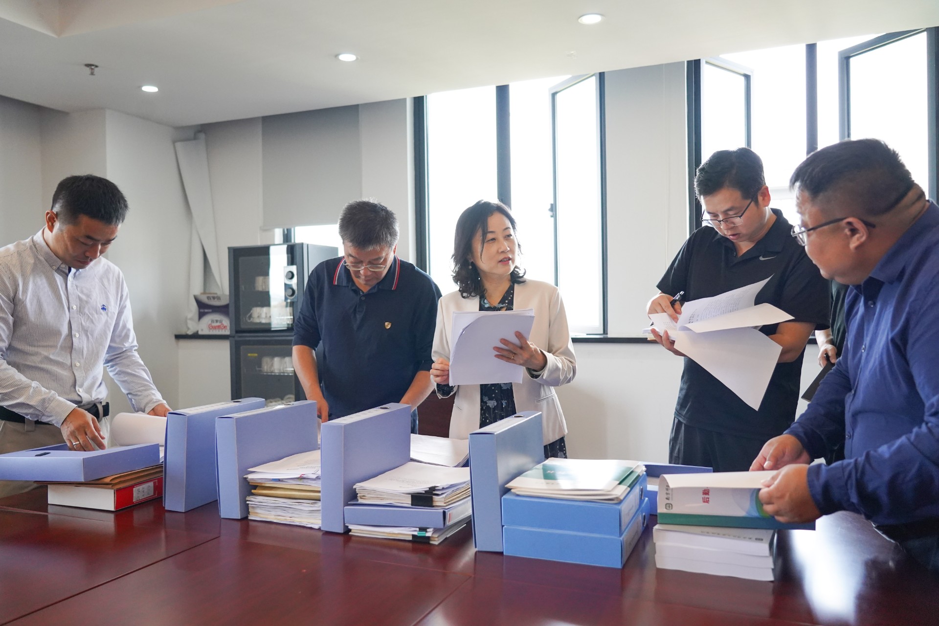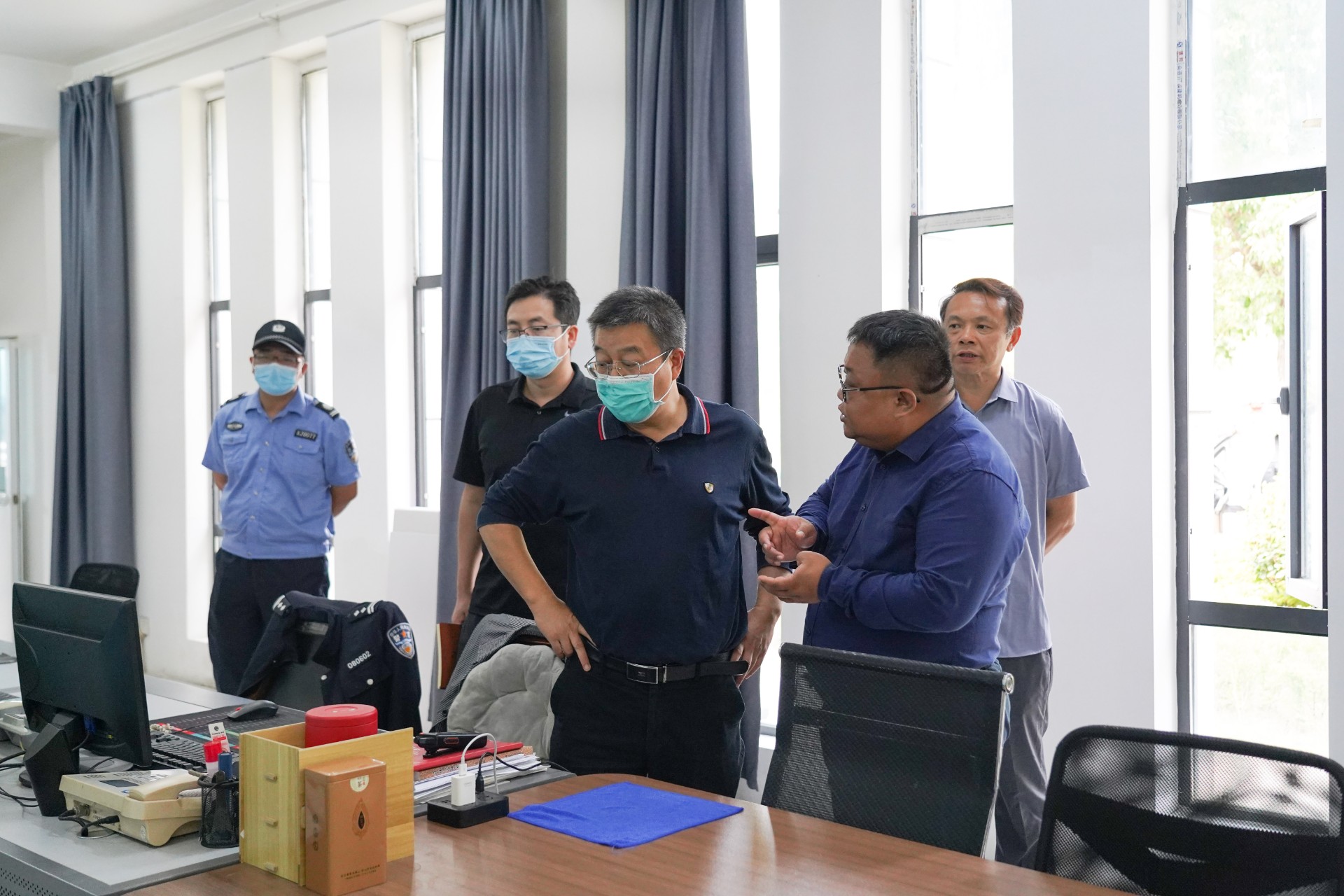 在听取汇报之后,检查组查阅了台账资料,到图书馆、南大门门卫监控室进行了现场检查。