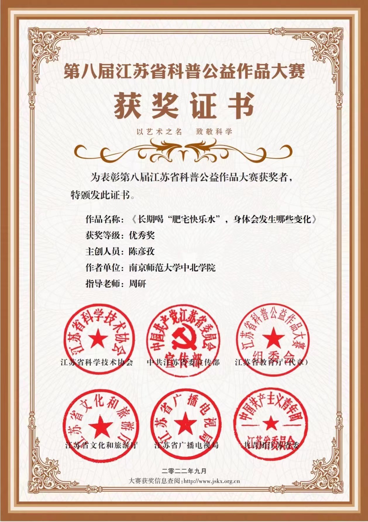 喜报|我院人文系学子在2022年江苏省科普公益作品大赛中喜获佳绩