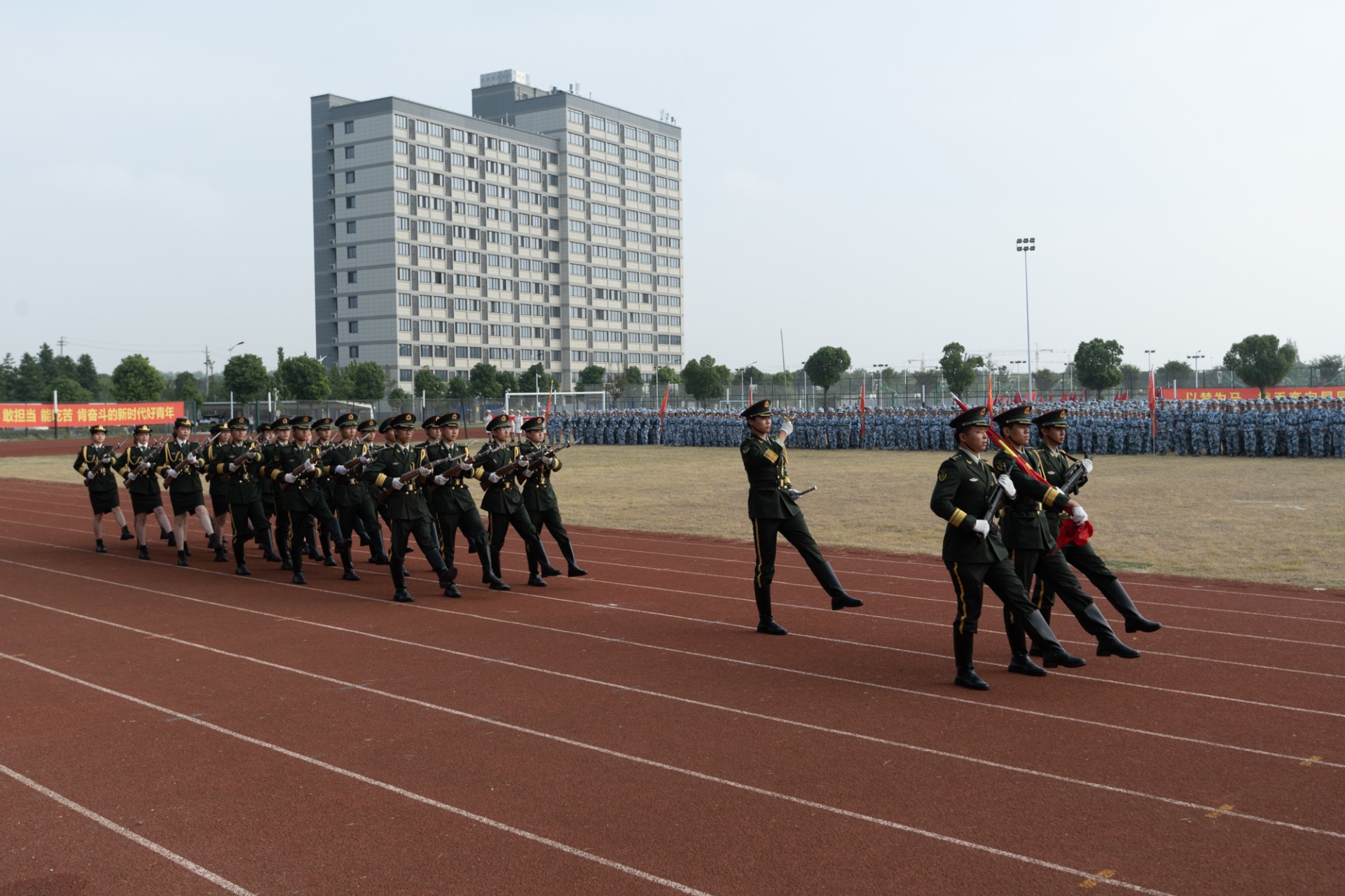 按照教育部、省教育厅的要求,引导大学生迈好大学第一步,我院组织了2022年学生军事训练,共有今年和去年入学的3600名学生参训。军训开始以来,全体学员在紧张辛苦规范严格的15天时间里锻炼身体,磨练意志,锤炼精神,圆满地完成了各项军训任务,并以严明的军纪军容呈现了新时代大学生的精神面貌,向即将到来的国庆节献上了大学生的青春之礼!