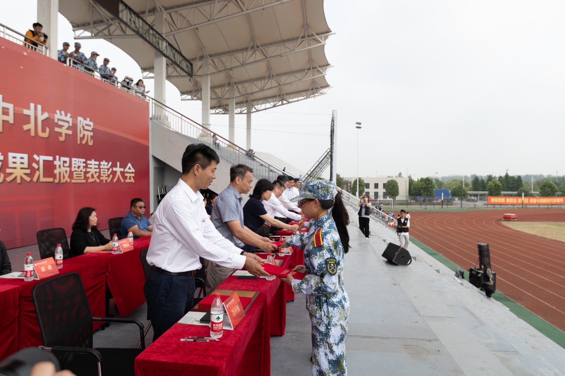 张连红在讲话中向完成本次军训任务的师生表示衷心的感谢,他希望同学们以军训为起点,传承和弘扬人民军队的伟大力量,时时牢记自己肩上的重任,将在军训中磨炼出的良好意志品质和精神作风带到今后的学习、生活中去,自觉将人生理想、个人成长融入祖国和学院的建设和发展之中。勤于学习实践,强化责任担当,勇做走在时代前列的奋进者、开拓者、奉献者,为实现中国梦、强军梦、中北梦,贡献青春、智慧和力量。