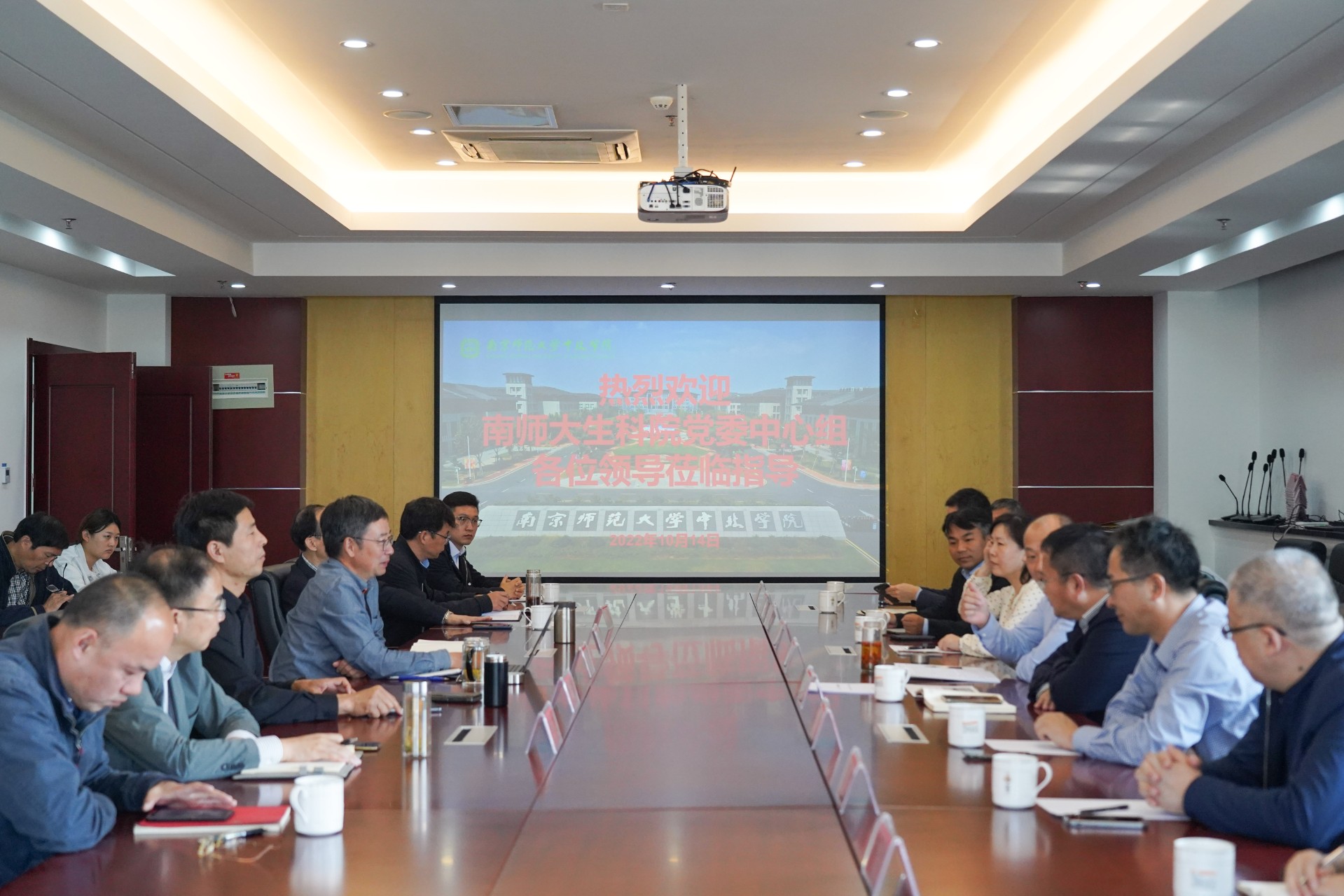 10 月 14 日下午,南京师范大学生命科学学院党委书记许小东带领生科院党委中心组成员与我院党委中心组成员开展学习贯彻南京师范大学第十七次党代会精神,提高人才培养质量专题联学活动。生科院党委书记许小东、院长戴传超、党委副书记李萍、副院长戴亦军、韩管助等10人,我院常务副院长常青、党委副书记冷开振、副院长钟文辉等党委中心组成员参加了会议。