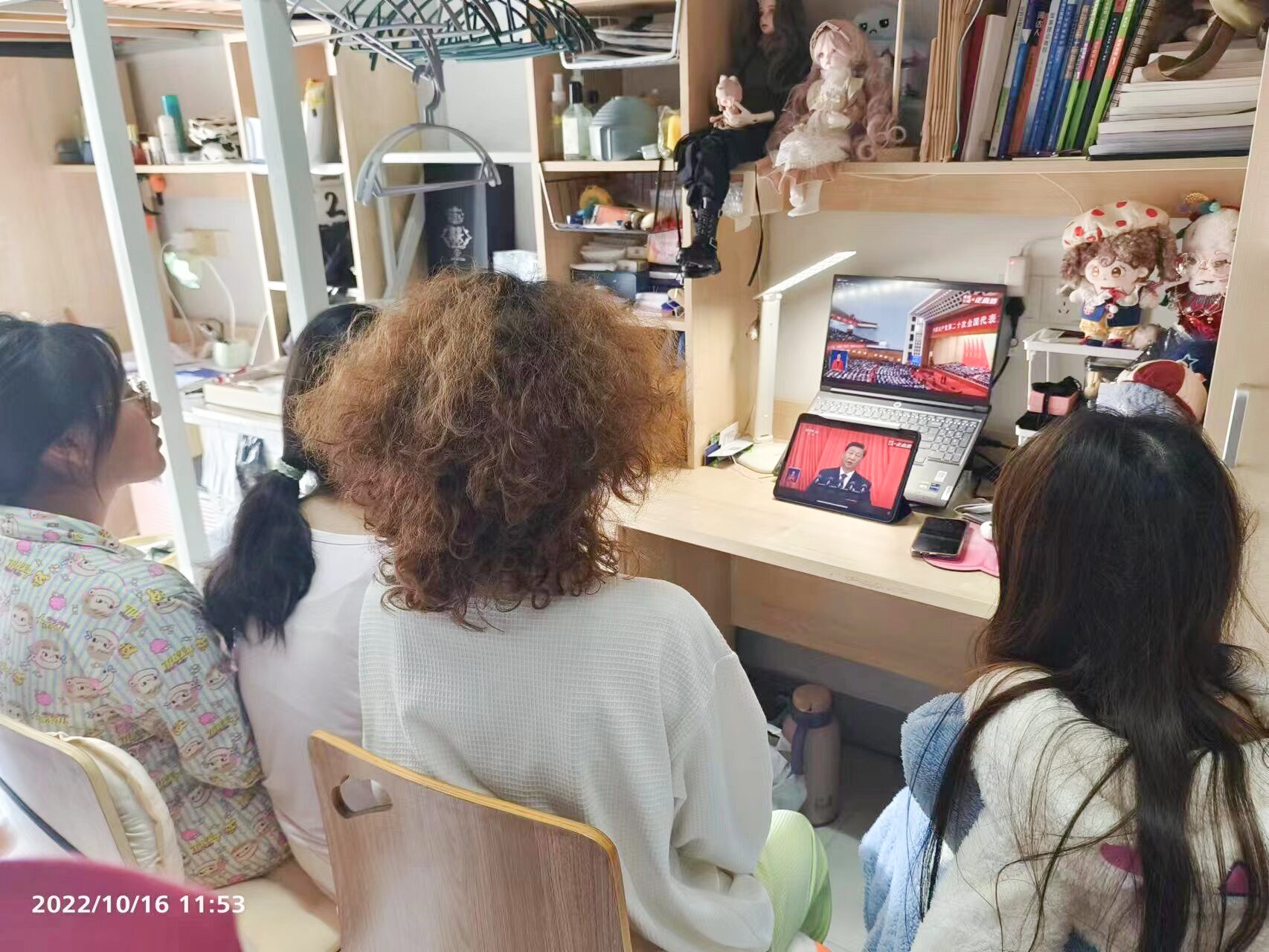 同学们在宿舍内集中观看