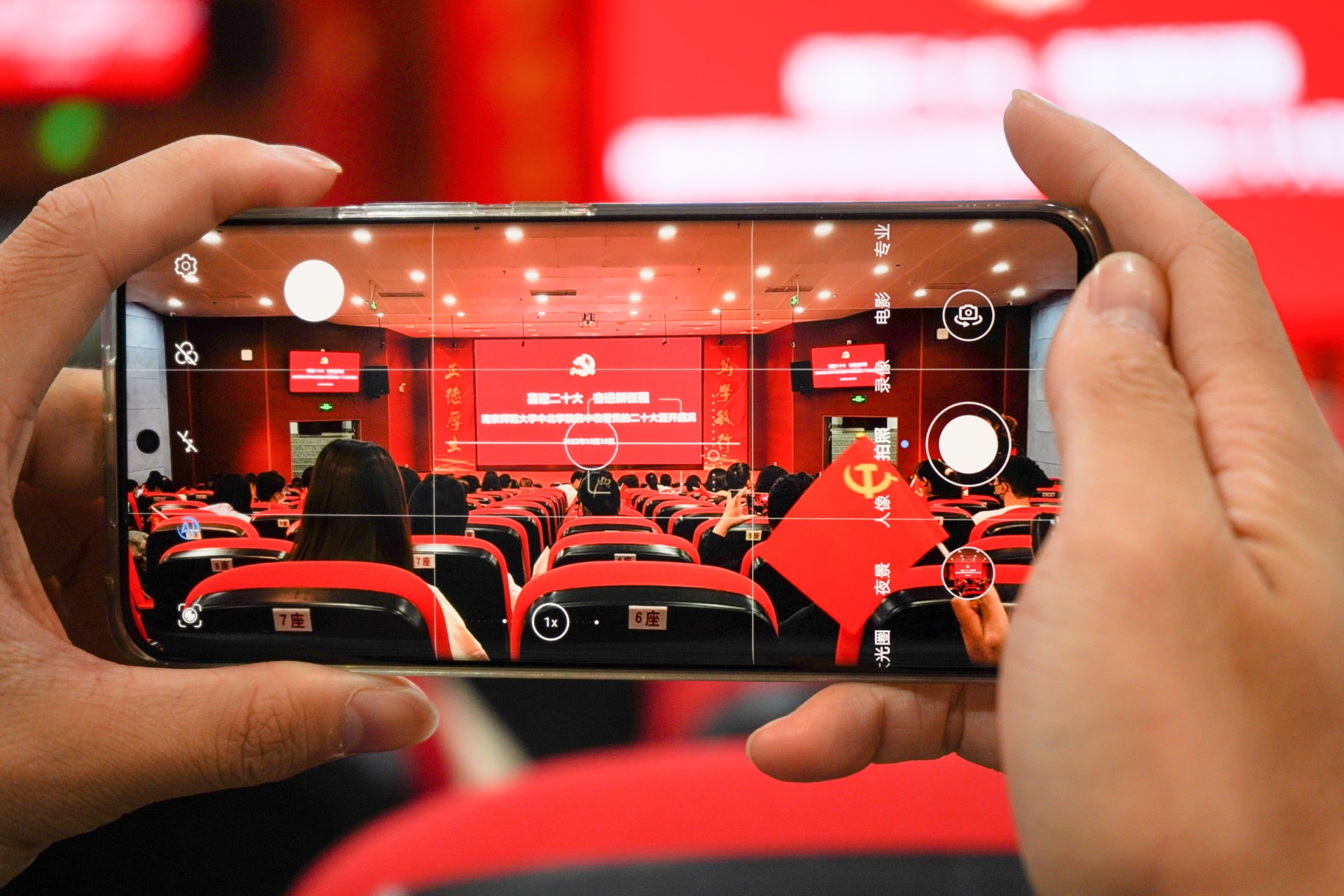 党员用手机记录现场盛况