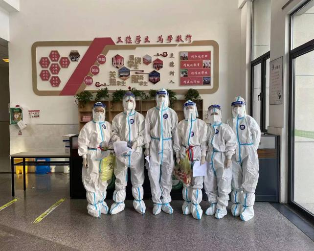 抗疫中的大白,虽然防护服遮住了他们的脸庞,汗水浸透了他们的衣衫,每当校园里出现他们,师生们都纷纷向他们表示敬意,为他们点赞。很多学生表示,没有想到,我们的老师也成了身边的大白,成了身边的最美志愿者。