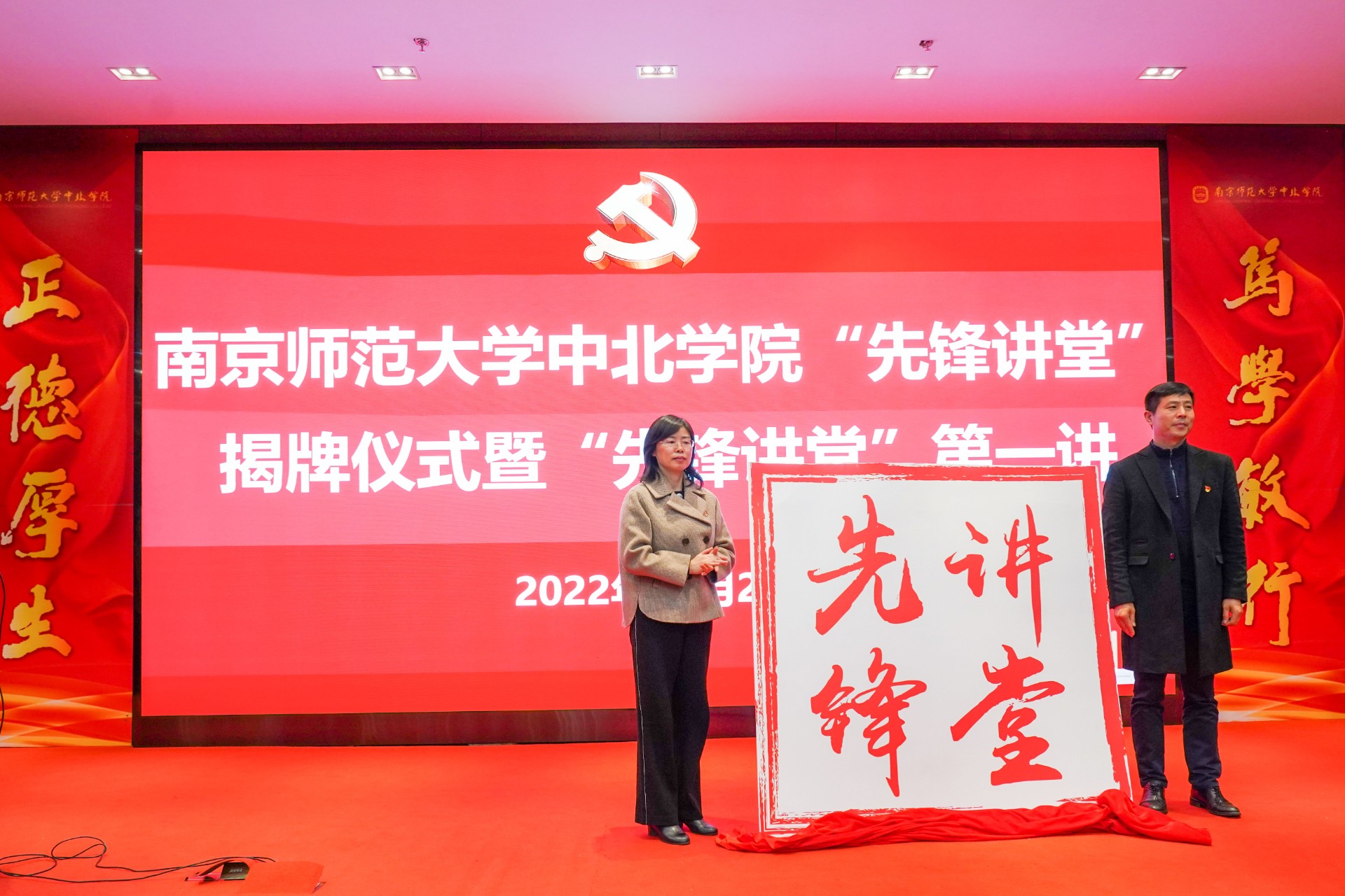 开班典礼后,学院举行了“先锋讲堂”揭牌仪式。李莉和冷开振为“先锋讲堂”揭牌。