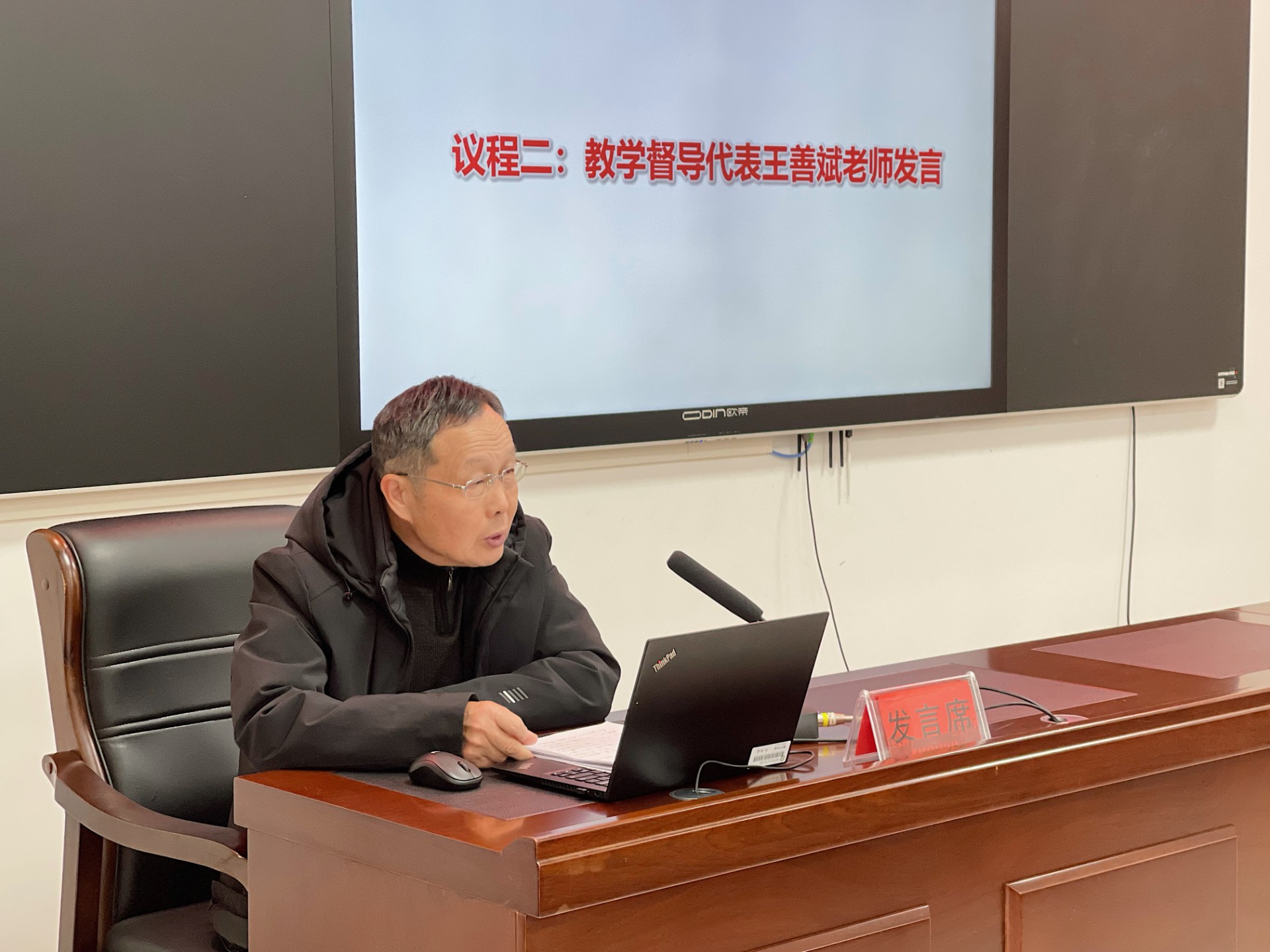 教学督导代表王善斌老师通报了上学期的查课、听课情况,并对日常教学工作提出了几点建议,一是要加强教学工作的规范性;二是要明确课程在培养方案中的地位和作用,提高教学设计能力;三是要提升教师的课堂掌控能力;四是要加强督查外聘教师上课情况。