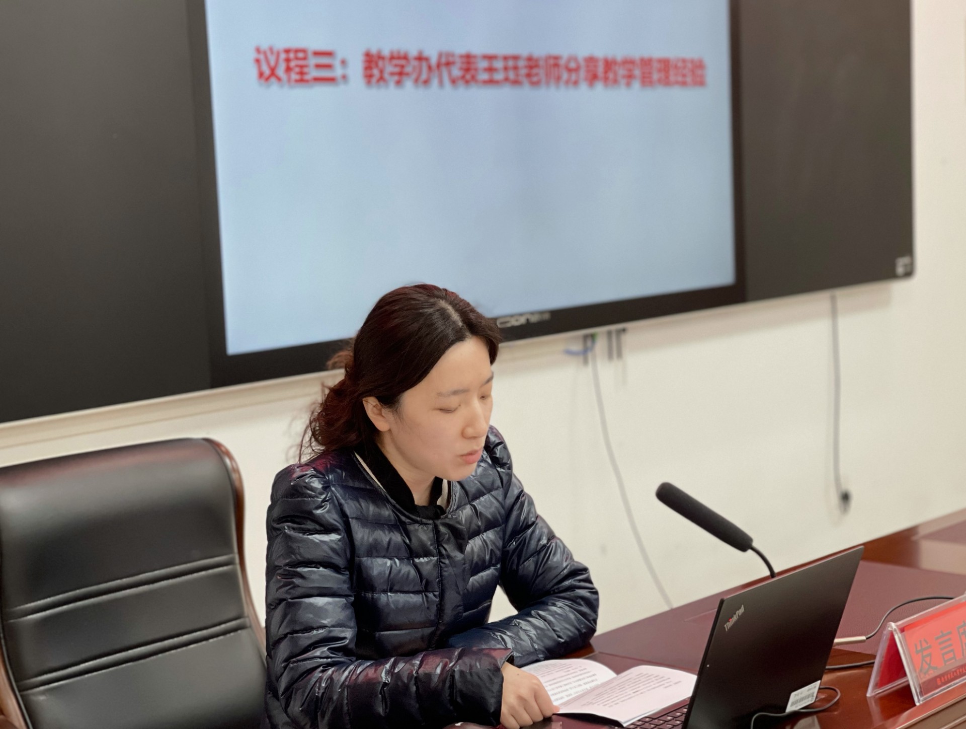 教学办代表、商学院王珏老师分享了她的教学管理经验,第一,重视理论知识的学习;第二,做好师生服务工作,并与学校各部门协作,做到“分工不分家”。