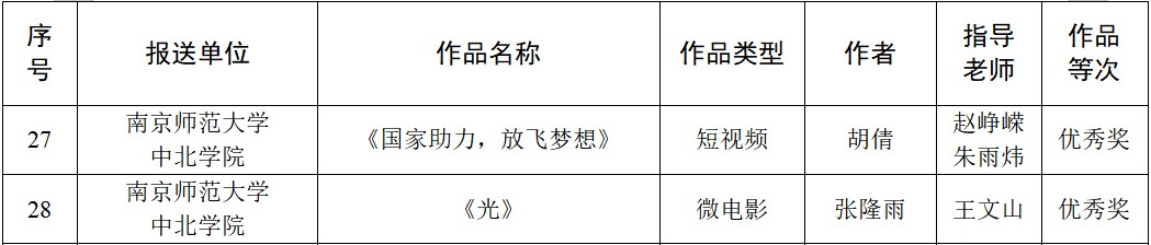 近日,2022年江苏省"苏乡永助"资助育人主题活动各类评审结果公布,经校内层层遴选、省学生资助管理中心审核、专家评审,我校胡倩同学的短视频作品《国家助力,放飞梦想》,张隆雨同学的微电影作品《光》均荣获"学生资助短视频作品"优秀奖,杨子怡同学被评为"江苏学生资助宣传大使"。