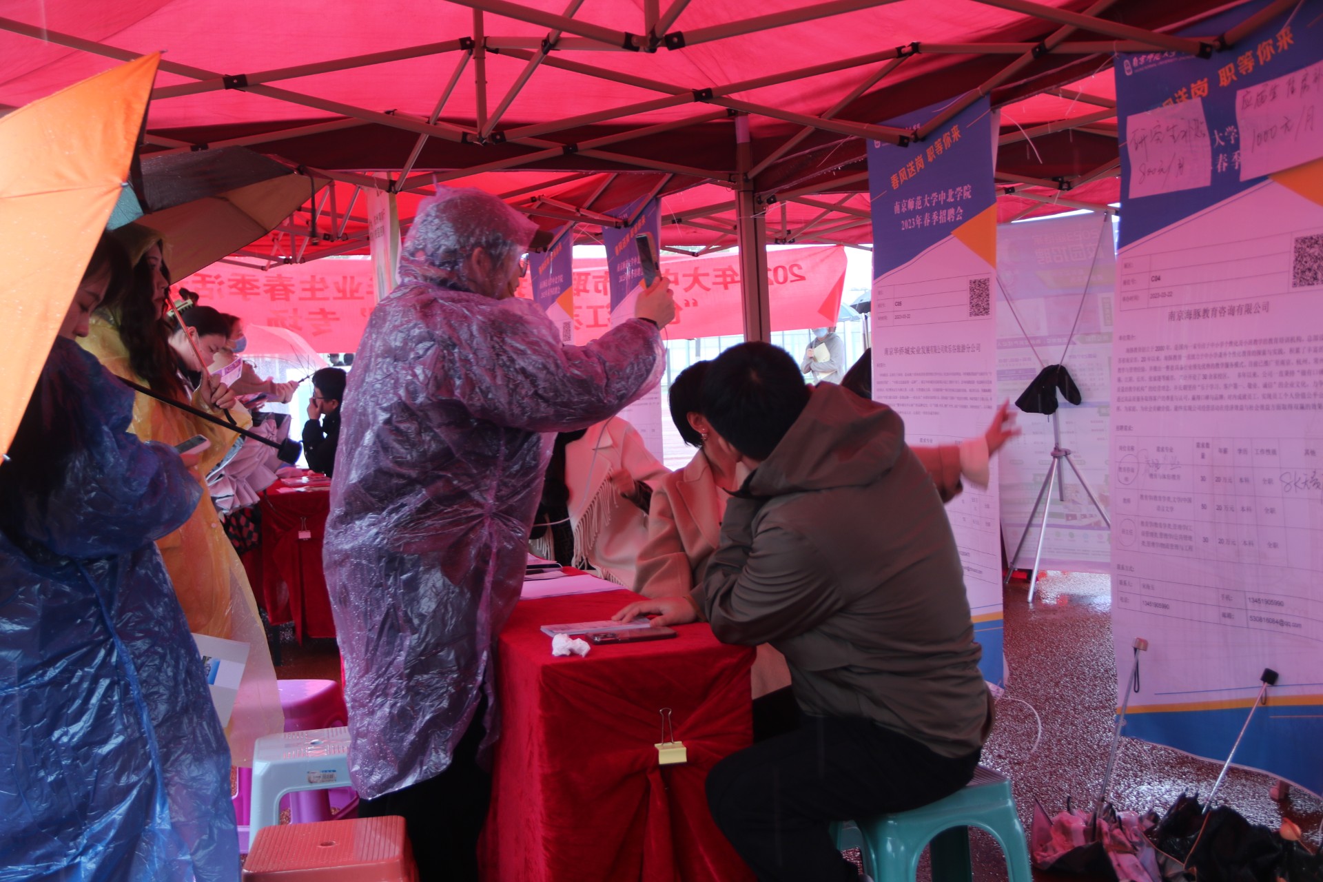 虽然天公不作美,雨水很大,依旧没有动摇同学们的求职动力。根据现场统计,共有241位2023届毕业生来到招聘会现场,常熟市博世堂教育培训中心、南京海豚教育咨询有限公司等单位收到毕业生简历达四十多份。