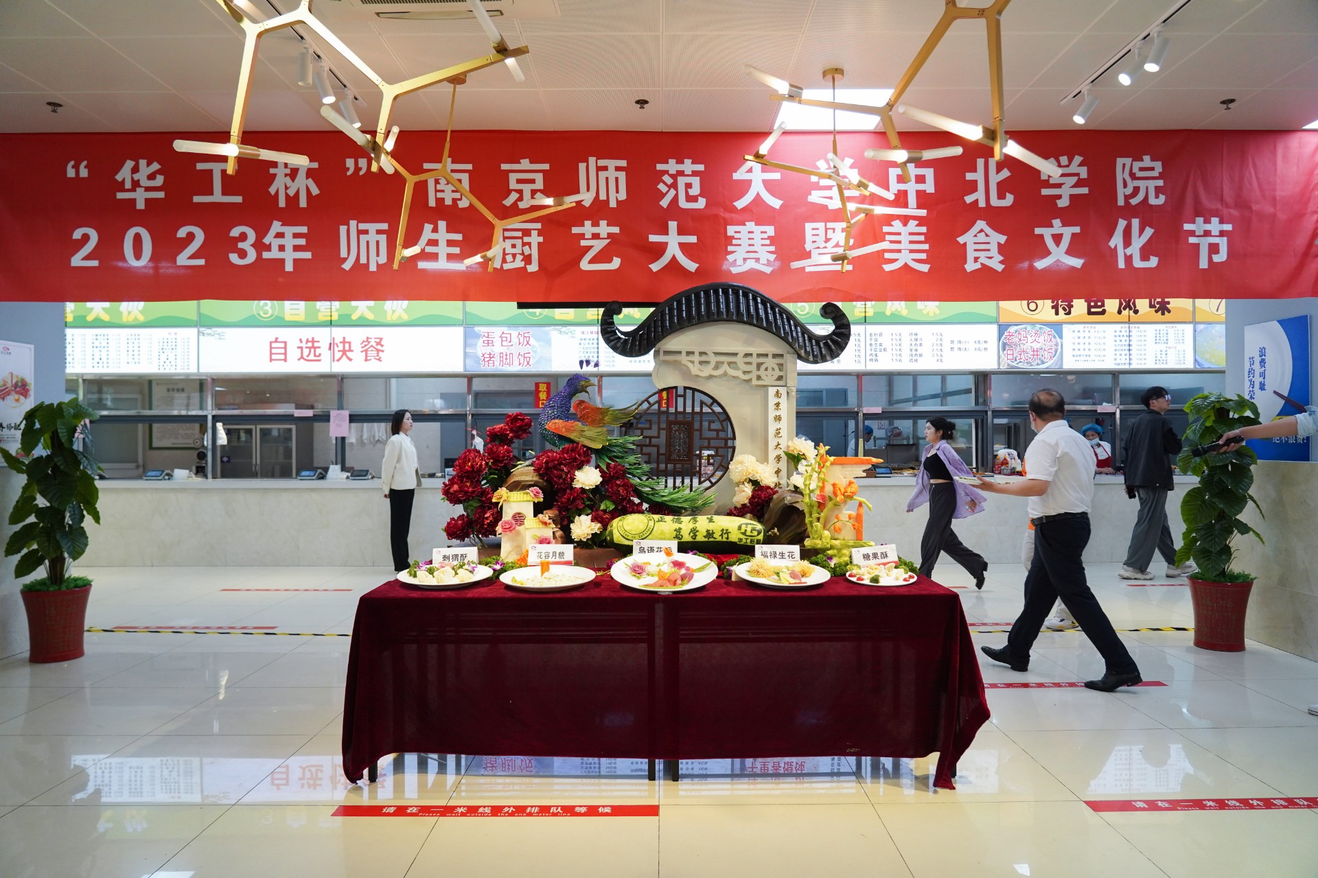 师生厨艺大赛活动结束后,武汉华工南京分公司总经理任旺为凤凰点睛,宣布“华工杯”美食文化节正式开始。各色风味小吃令在场师生目不暇接,纷纷驻足品尝,在活动中切身体验校园饮食文化。现场也设有幸运抽奖活动,抽取幸运同学发放餐饮券等小礼品。