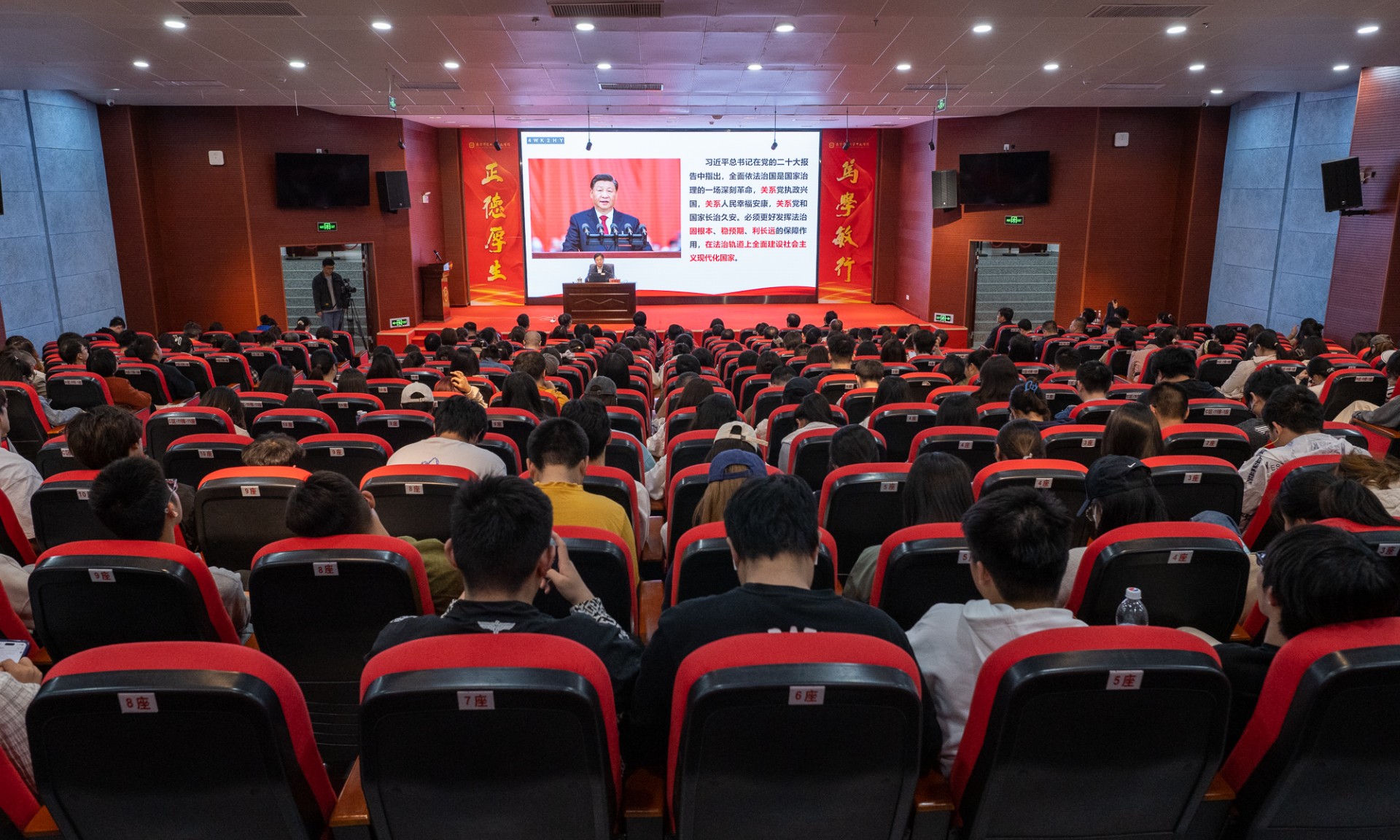 夏锦文教授是法学博士,二级教授,博士生导师,曾被授予第四届“江苏社科名家”称号。夏锦文教授给我校师生所作的主题教育专题报告题为《习近平法治思想是全面依法治国的根本遵循和行动指南》,报告中他阐述了习近平法治思想产生的时代背景、形成过程、核心要义、鲜明特质。他指出,党的二十大报告首次将全面依法治国作为专章进行论述,提出“在法治轨道上全面建设社会主义现代化国家”,这是习近平法治思想的核心精华和拓展升华,我们必须深刻领会、系统把握。