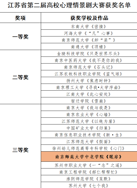 喜报:我校在江苏省第二届高校心理情景剧大赛中荣获三等奖