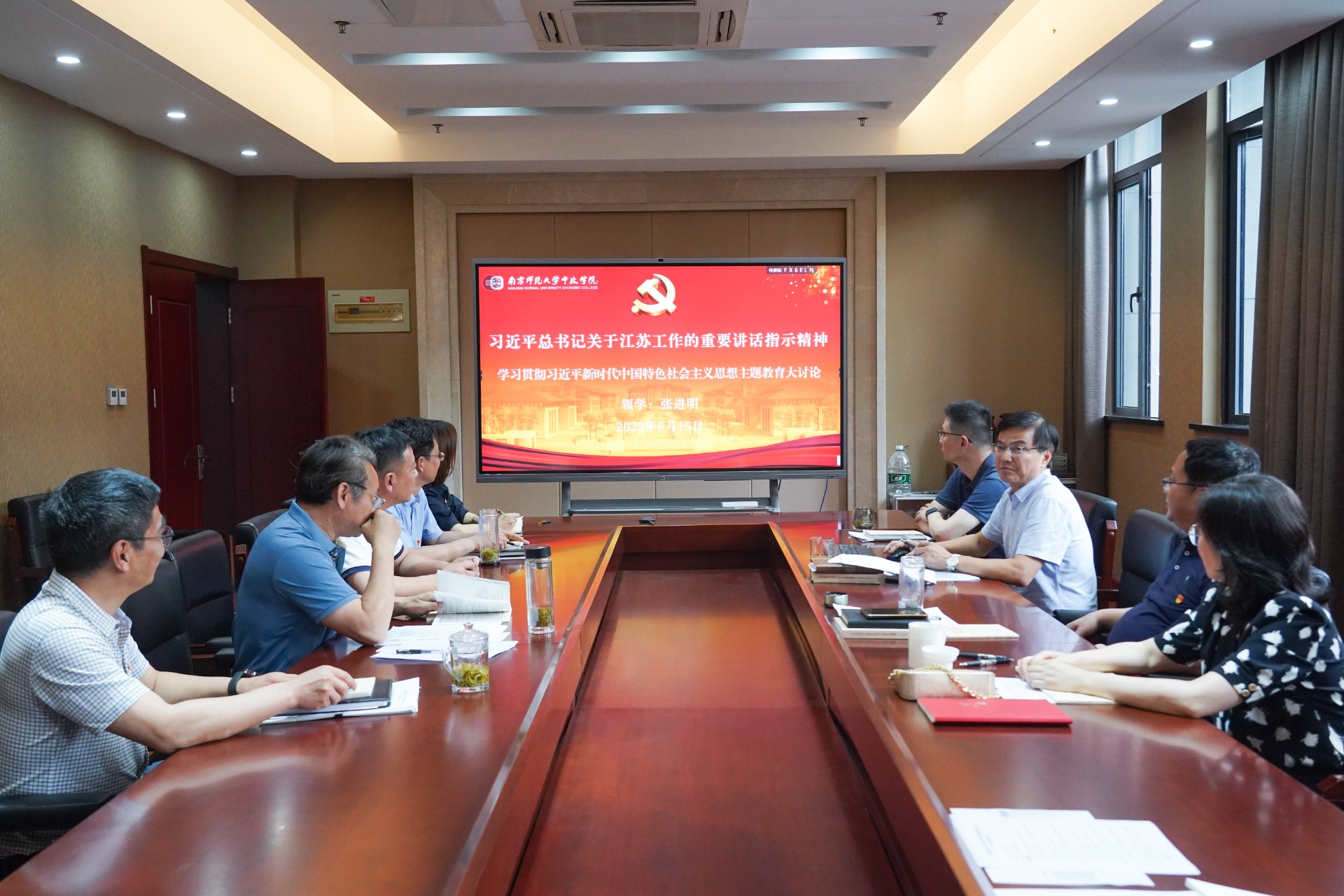 6月15日下午,学校领导班子学习贯彻习近平新时代中国特色社会主义思想主题教育读书班,第四次集中学习在正德楼306会议室召开。本次读书班由副院长张进明领学,学习主题是:坚持以习近平总书记对江苏工作的重要指示精神为强大动力,自觉接受主题教育锻造洗礼,更好扛起新使命,谱写新篇章。学校全体党委委员参加集中学习,党委书记李莉主持。