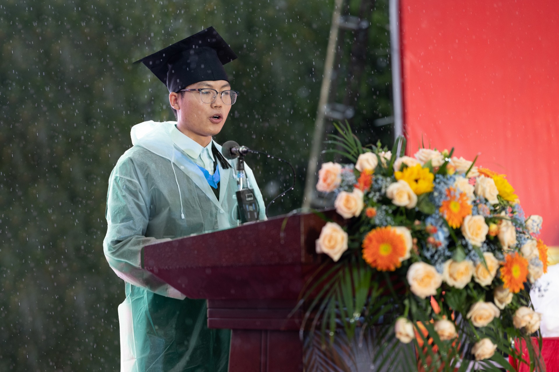 来自外国语学院的许蓓蓓作为教师代表发言,对即将扬帆远航,踏上人生新征程的各位同学送上了老师的嘱咐:坚守梦想、敢于担当、守住善心。