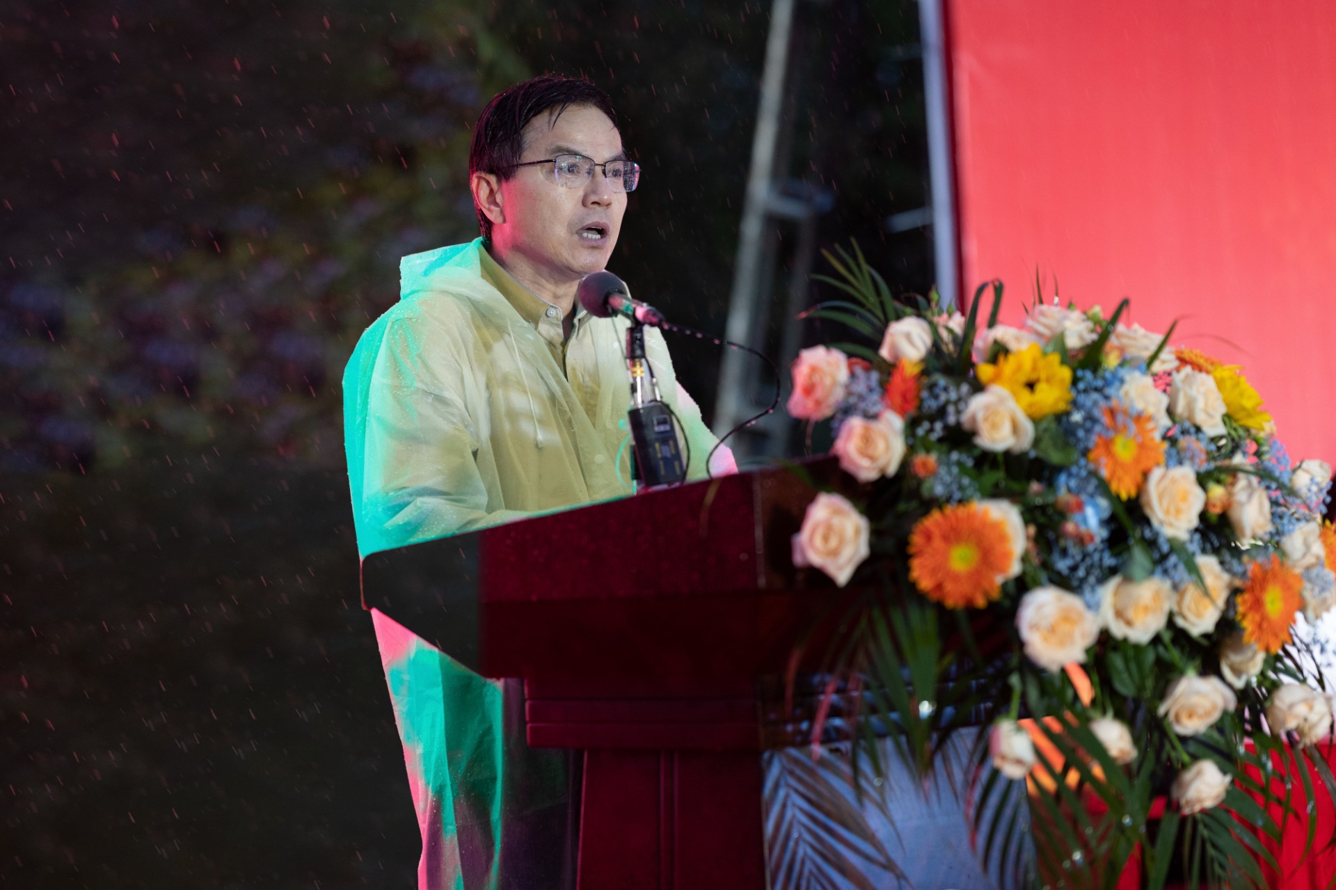 张文华在讲话中首先向所有毕业学生送上一份丹阳的邀约,期望大家能够欣赏丹阳,驻足流连;爱上丹阳,体悟大美;筑梦丹阳,施展抱负,用奋斗“荣耀”来成就“王者”人生。接着张文华以饱含深情的滚烫的三句赠言为大家呈上一份“留丹请柬”。第一句,愿你留取一片“丹”心,感悟“阳”光热诚;第二句,愿你施展妙手“丹”青,绘就“阳”光画卷,第三句,愿你携带白马“丹”书,开启“阳”光坦途。张文华祝各位同学怀揣青春理想,点燃昂扬激情,阔步星辰大海,在火热的青春中放飞人生梦想,在奋斗的青春中成就事业华章。