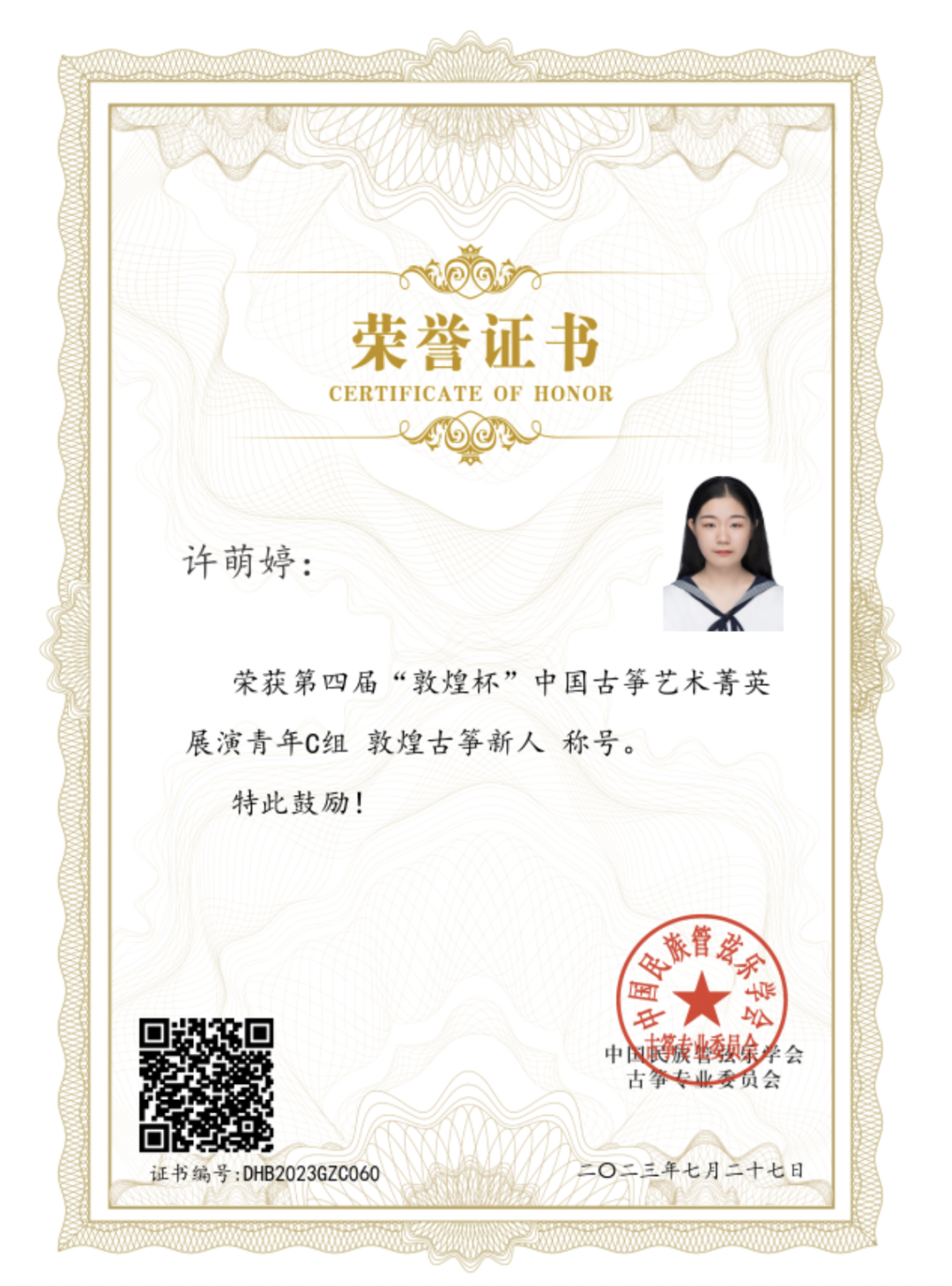 2023年7月23日—27日,第四届"敦煌杯"中国古筝艺术菁英展演顺利完成四个职业组别的最终评审,我校音乐学院学生李佳格、许萌婷荣获职业青年C组三等奖(敦煌古筝新人)。