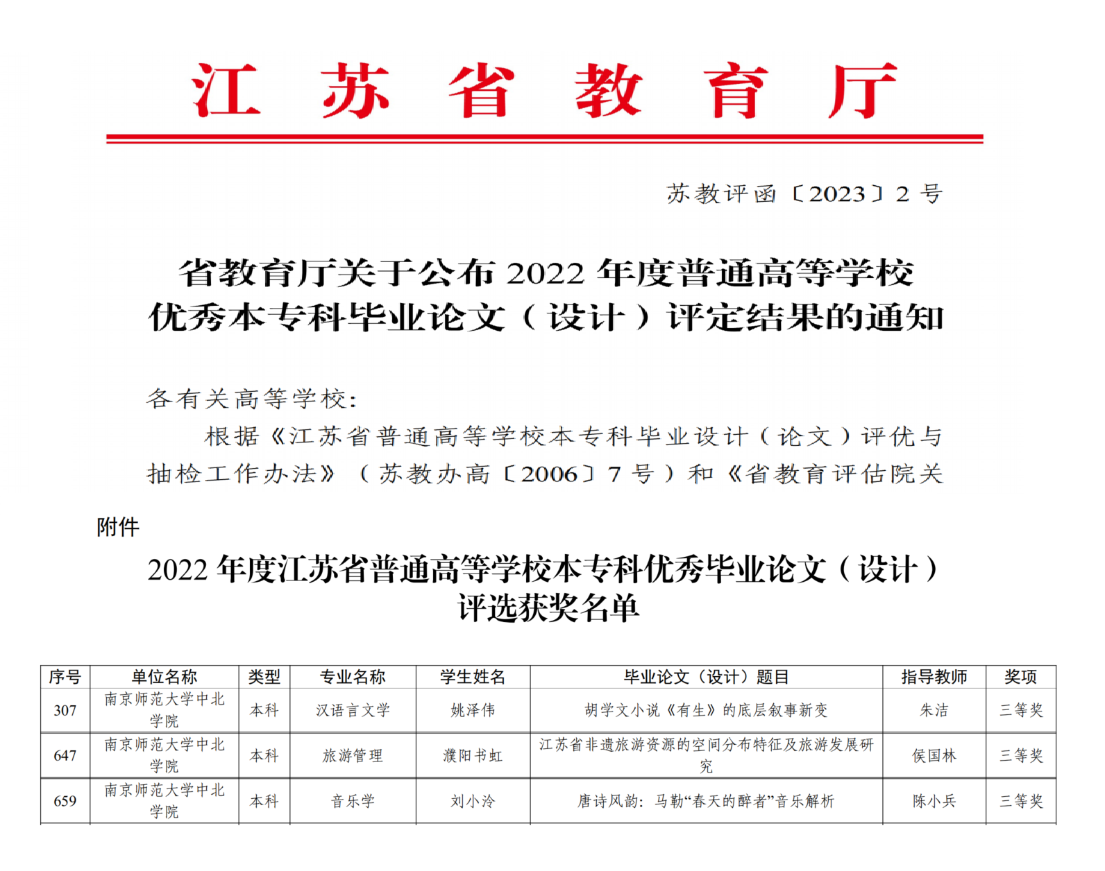 喜报:我校三篇毕业生论文荣获2022年度江苏省普通高等学校本科优秀毕业论文(设计)评选三等奖