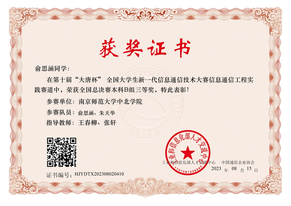 喜报|信息工程学院学子在第十届“大唐杯”全国大学生新一代信息通信技术大赛中再获佳绩