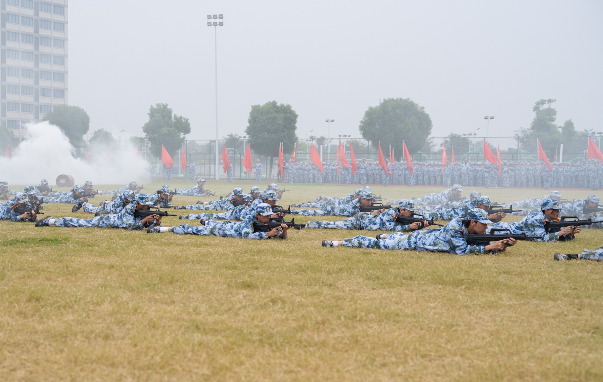 在分列式展示中,各连队用气势如虹的口号,铿锵有力的步伐,热情饱满的状态,为自己的军训第一课交上了满意的答卷。