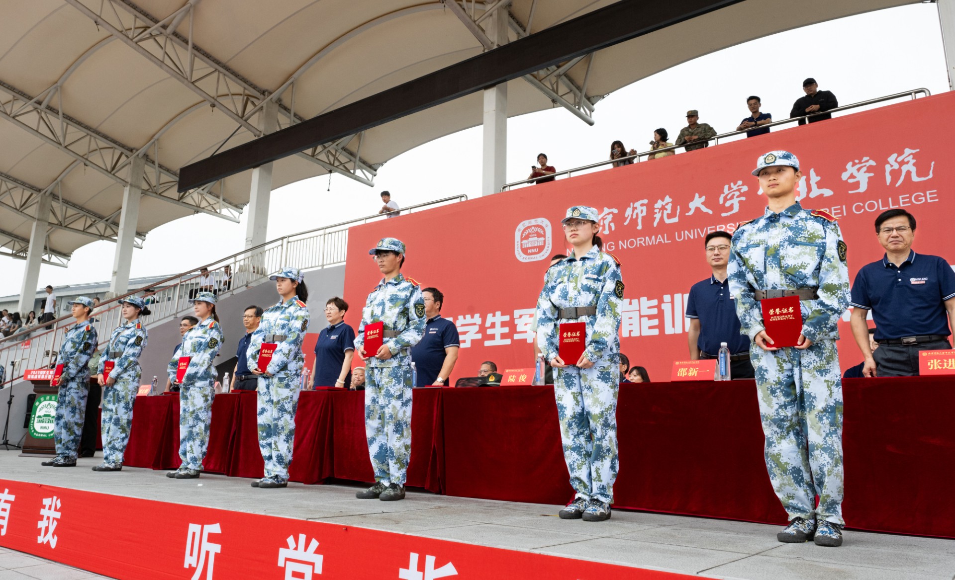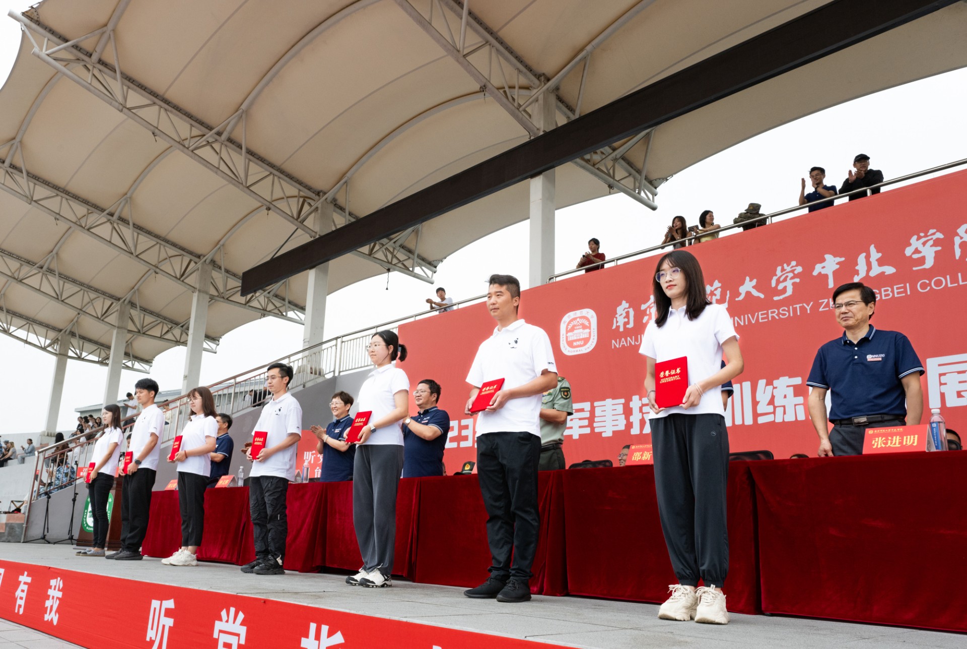 汇报展示结束后,邵新一宣读军训表彰决定,与会领导依次为受表彰的先进集体和个人颁奖。
